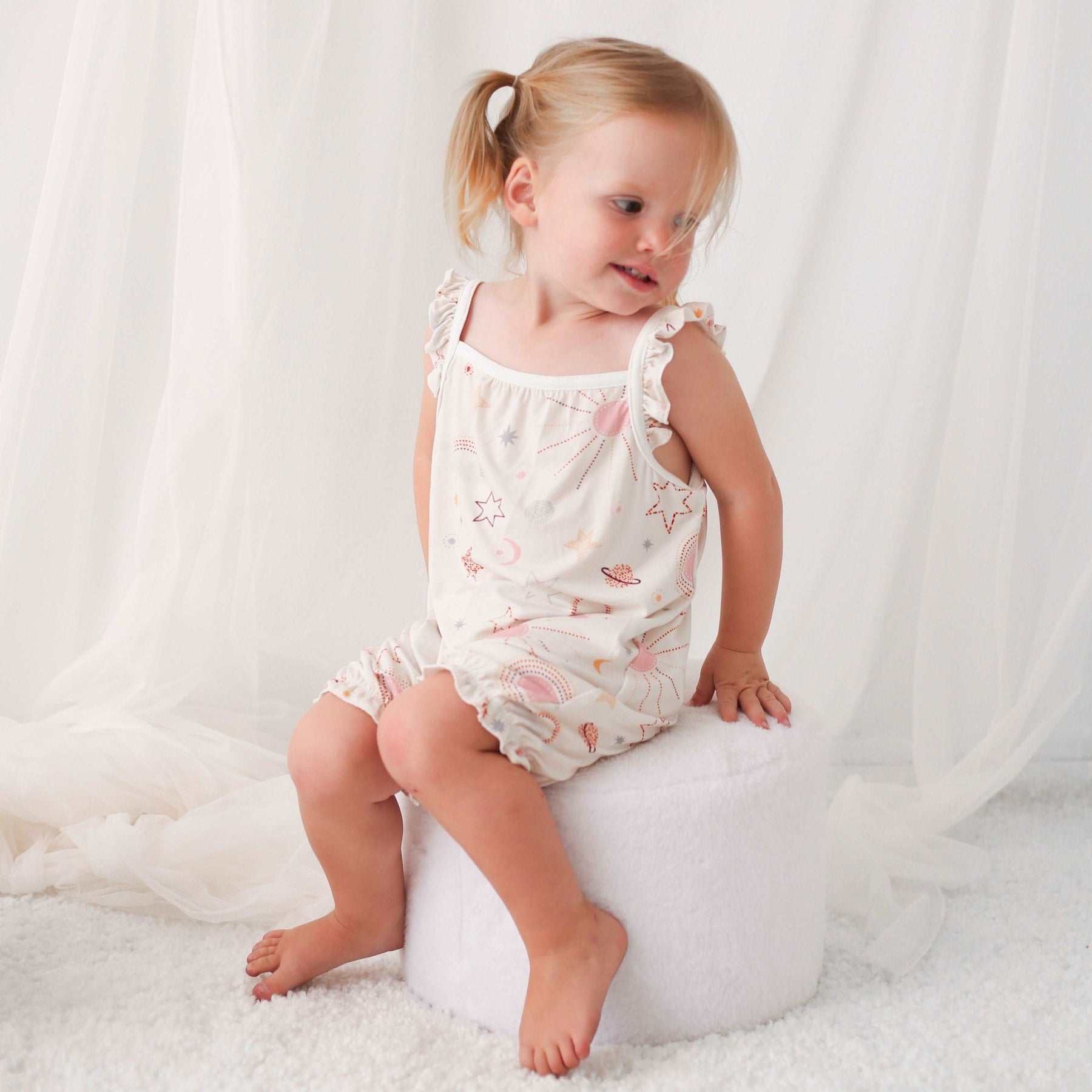 Our amazingly soft flutter rompers will keep your little your little babe cool and comfy all day long. These soft as butter flutter sleeve rompers are perfect for spring and summertime lounging.