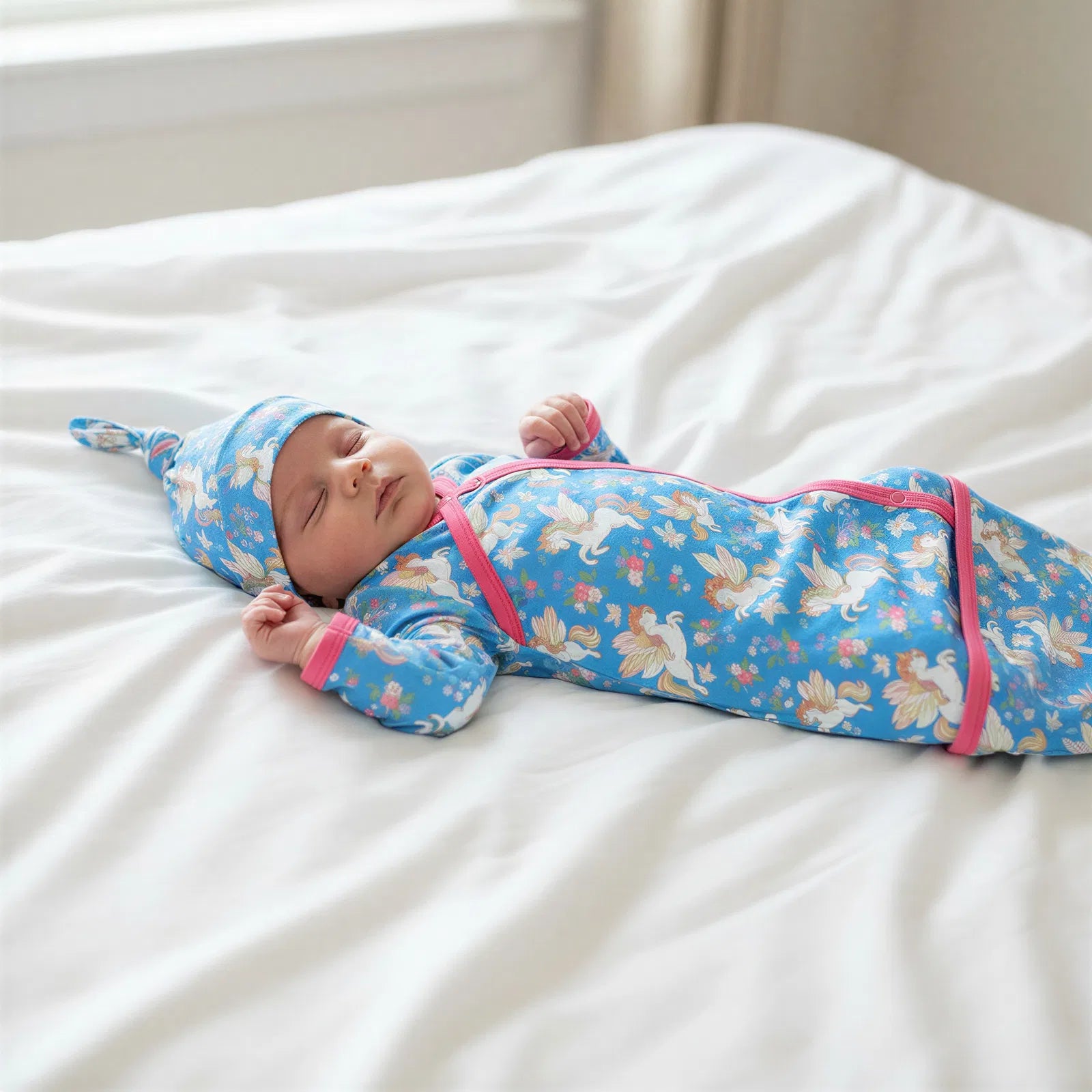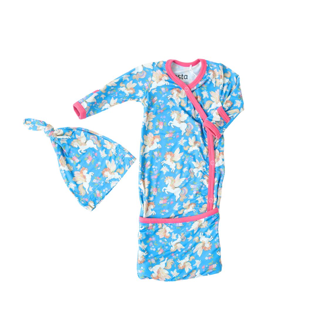 Wrap your little one in cozy comfort with a Gown & Hat, crafted from ultra-soft bamboo. The kimono-style gown easily folds over to keep tiny feet warm and snug, while the built-in hand mittens gently protect against scratches during sweet snoozes.