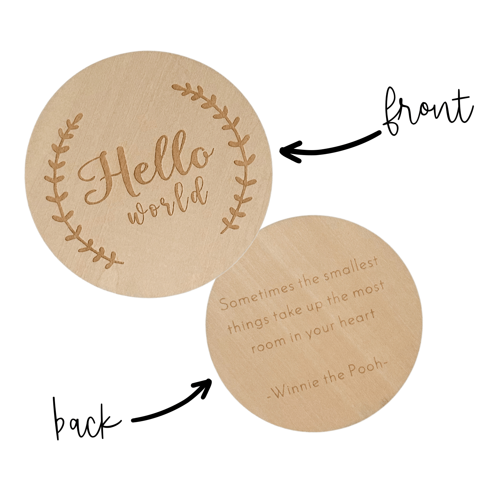 - Wooden hello to the world card with our favorite quote from Winnie the Pooh