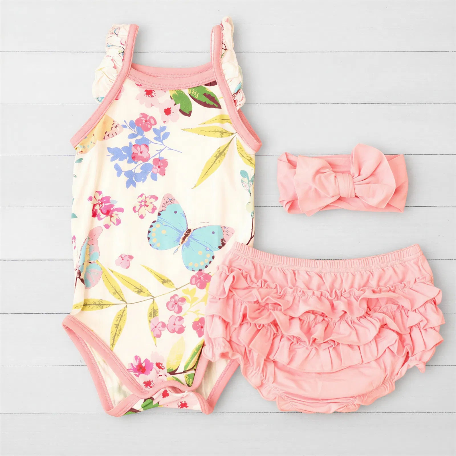 • Ruffle Bloomer, onesie and headband