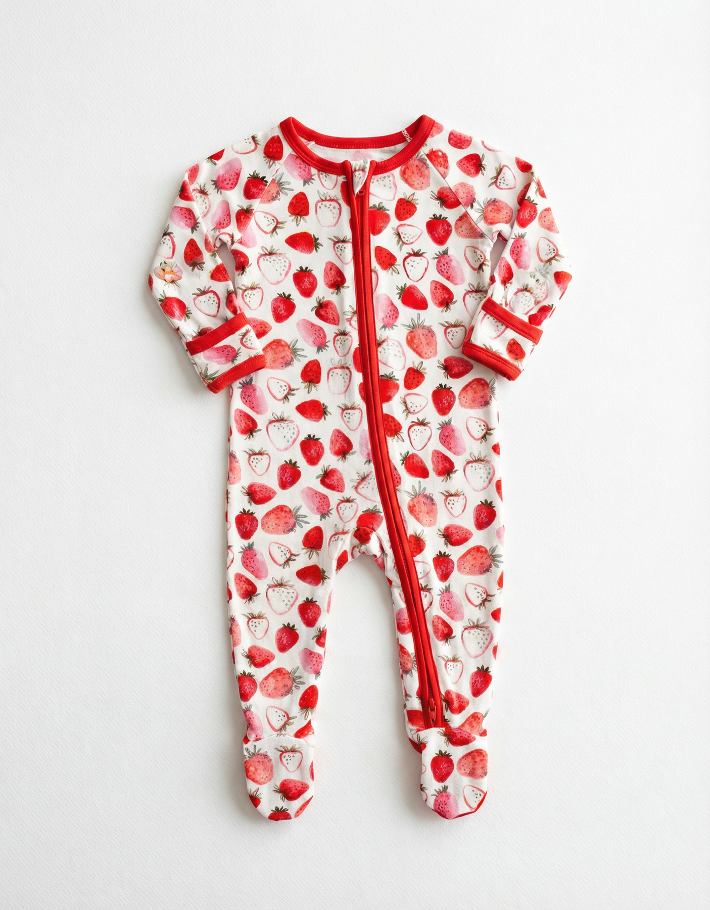 Keep your little snuggled up in our succulent strawberry footie! Made with super soft bamboo, this footie features succulent strawberries print and a dual 2-way zipper for hassle-free diaper changes. Plus, keep little hands warm with fold over mittens on NB and 0/3m sizes, and foot grips on larger sizes. So soft and cozy, your baby will love it!