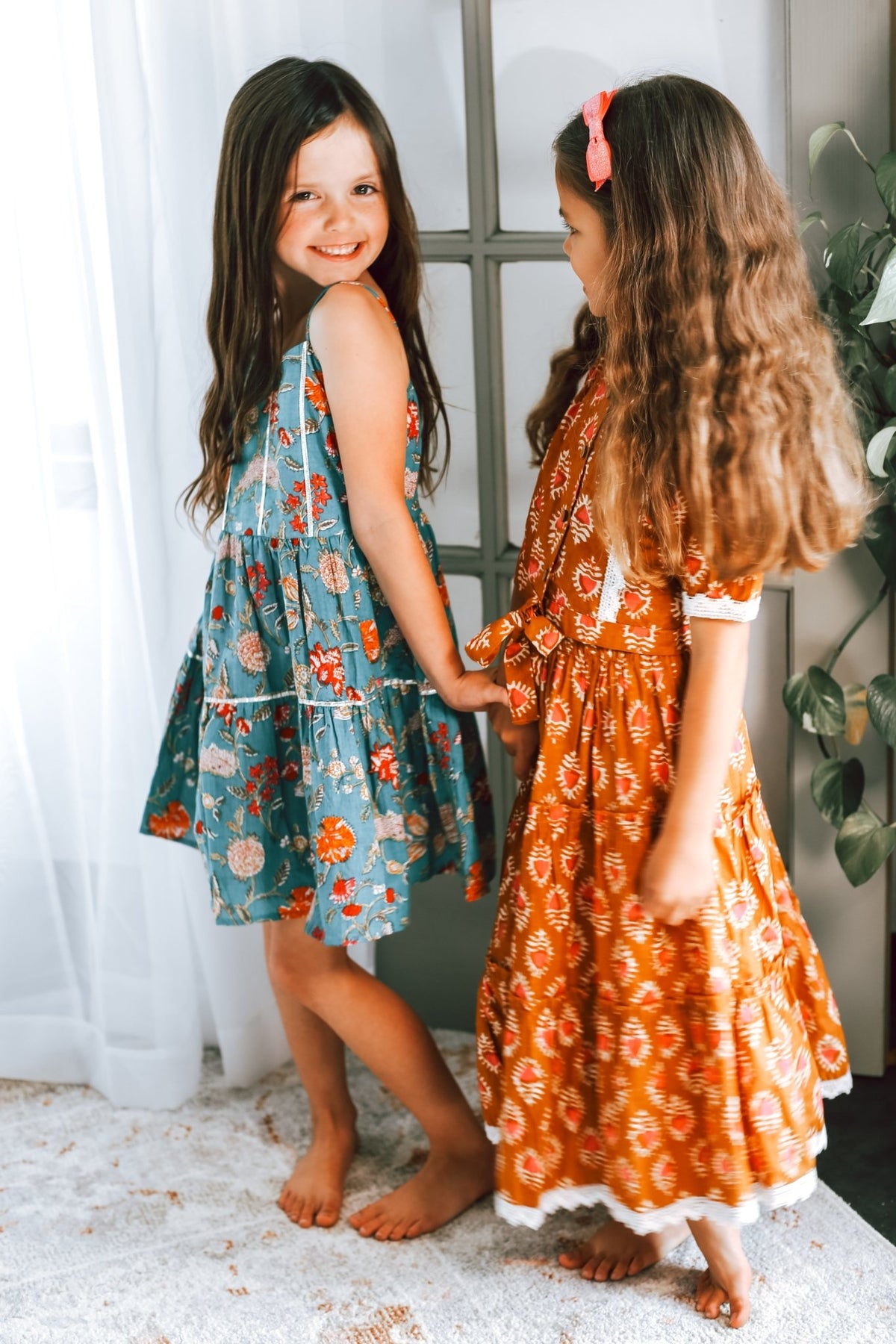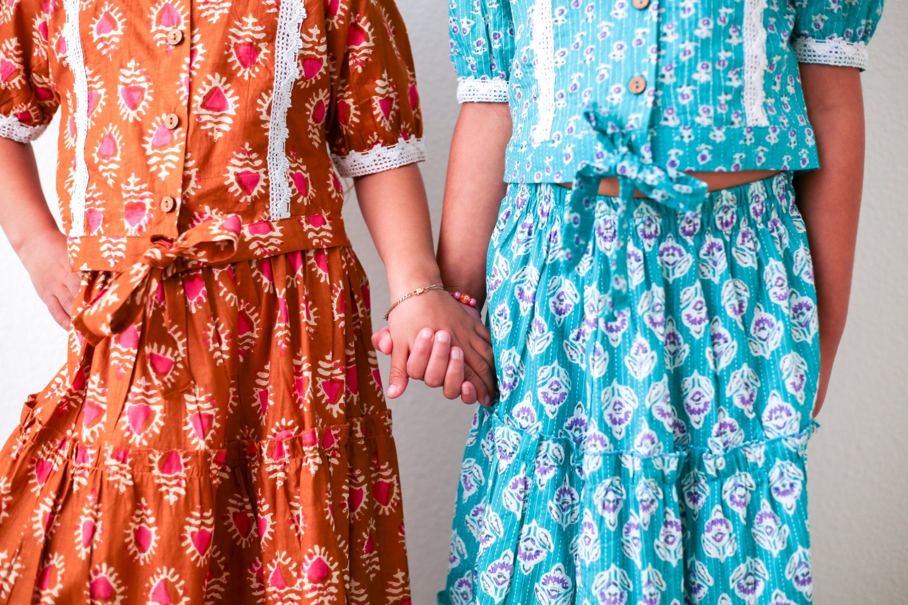 Add a pop of color to your little girl's wardrobe with our Shaya Lehenga in rust! Featuring an elastic waist for comfort and lace detailing on the top with wooden buttons, she'll be the coolest kid on the block. (Note: for girls who know how to rock a lehenga!)
