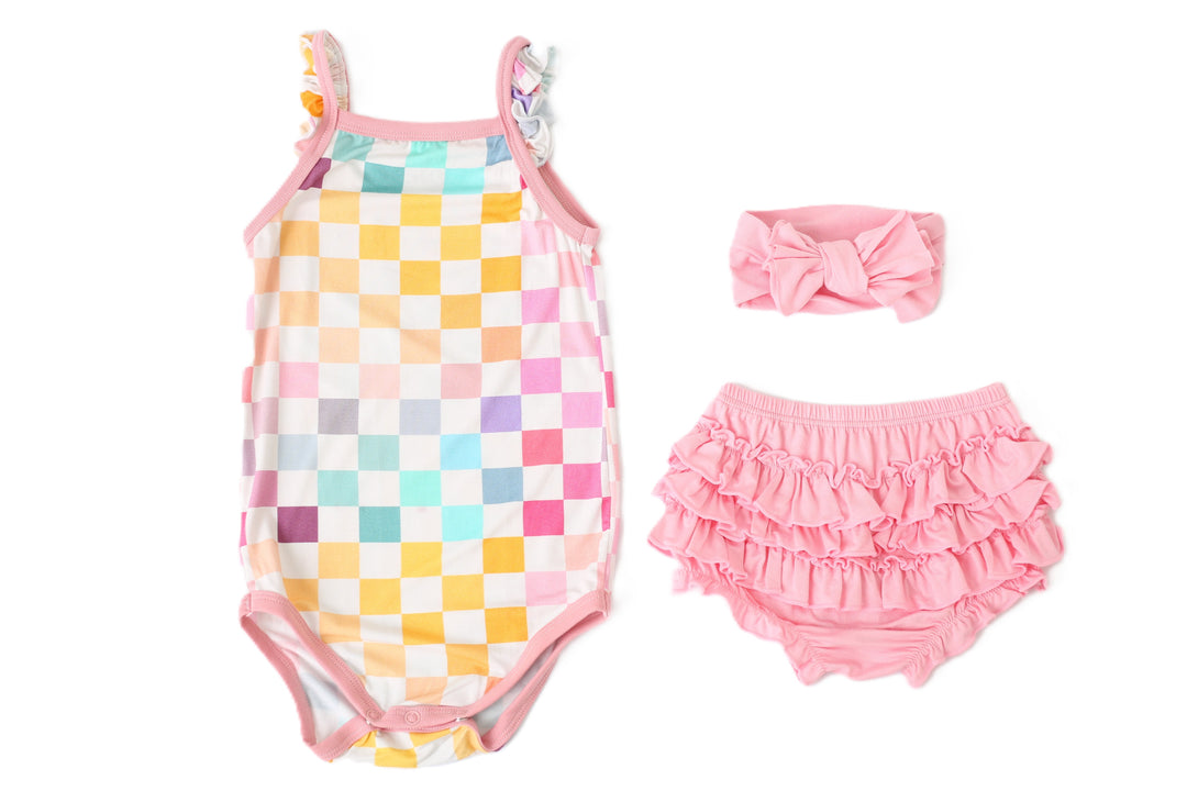 Pastel Checks Ruffle Bloomer Set