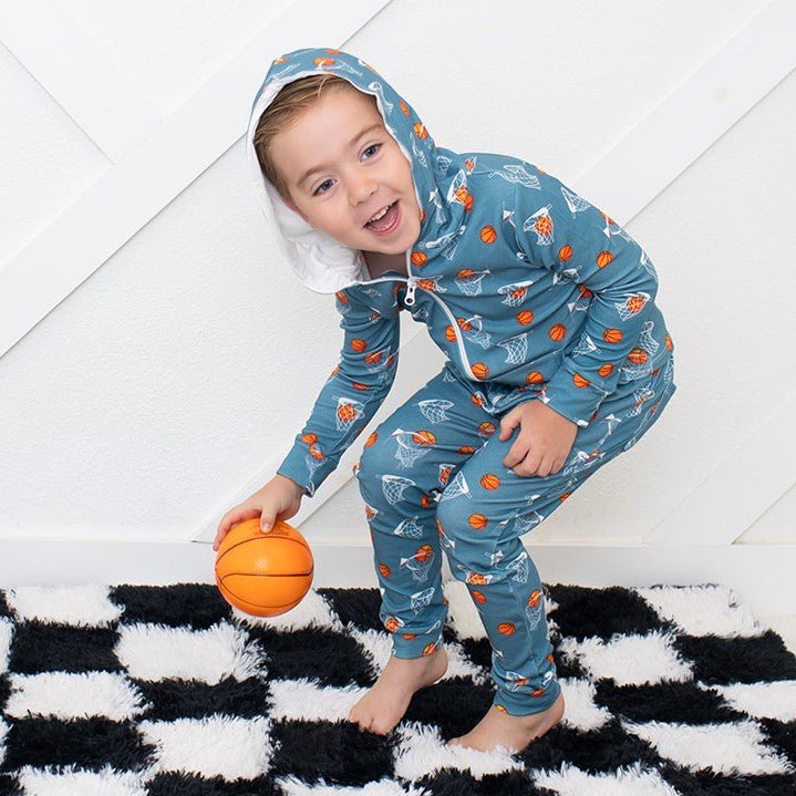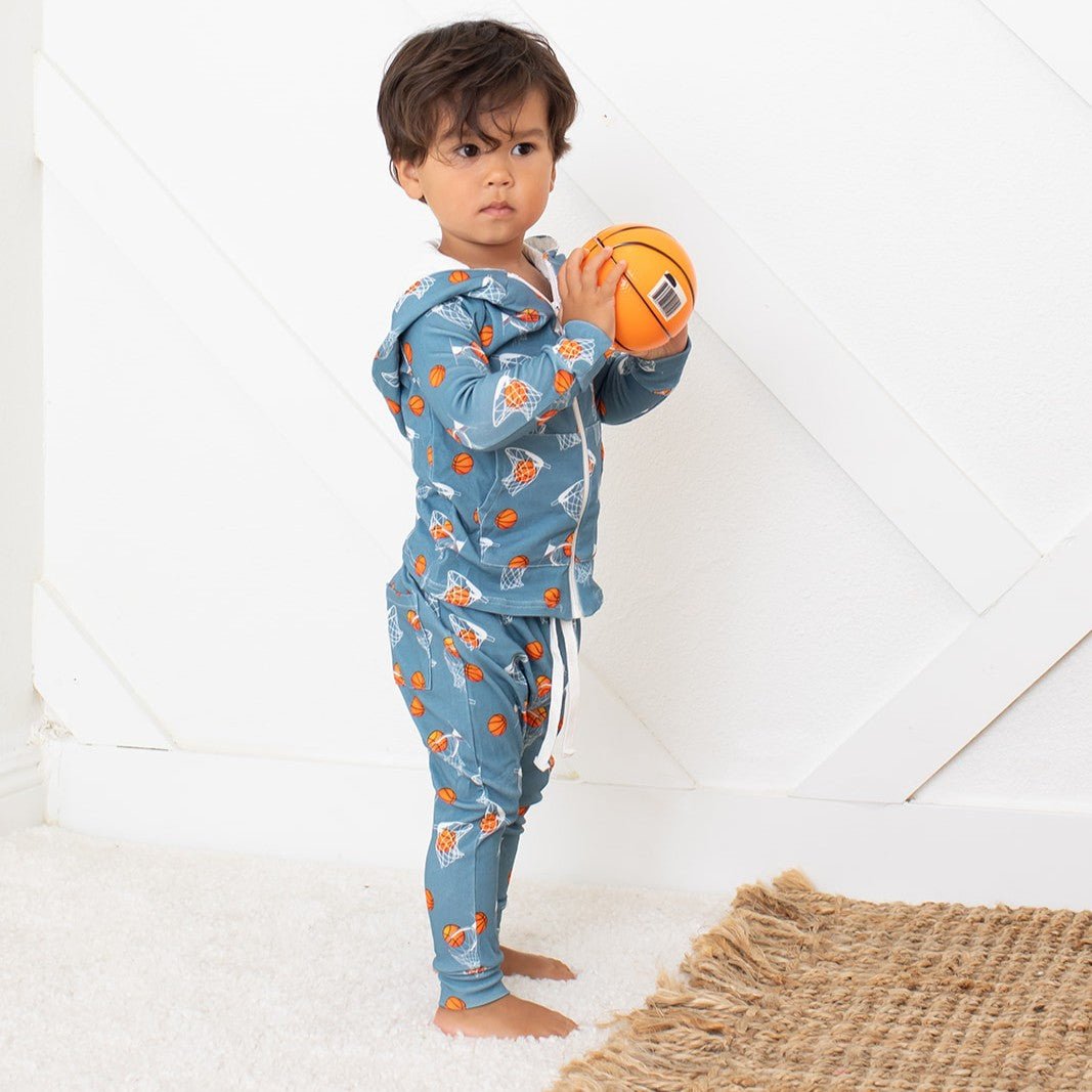 Get ready for fun playdates with these Relaxed Fit Joggers in an all over print. Made with our signature cotton/bamboo blend, 3x thicker than our regular bamboo to keep your little one warm with a super soft feel. Drawstrings add a cool edge to these comfortable and relaxed fit joggers. Pair with the matching zippered hoodie (sold separately) for an unbeatable look.