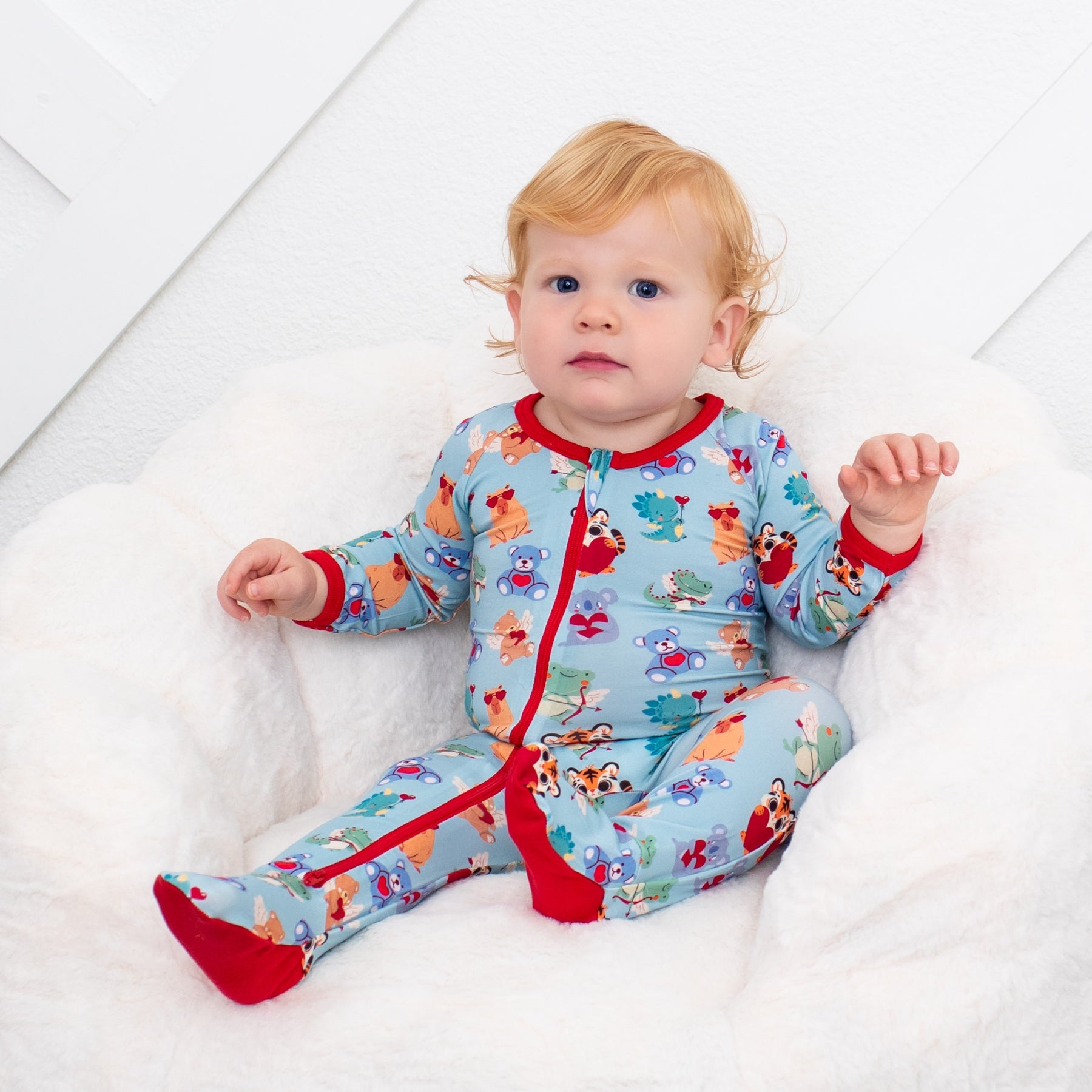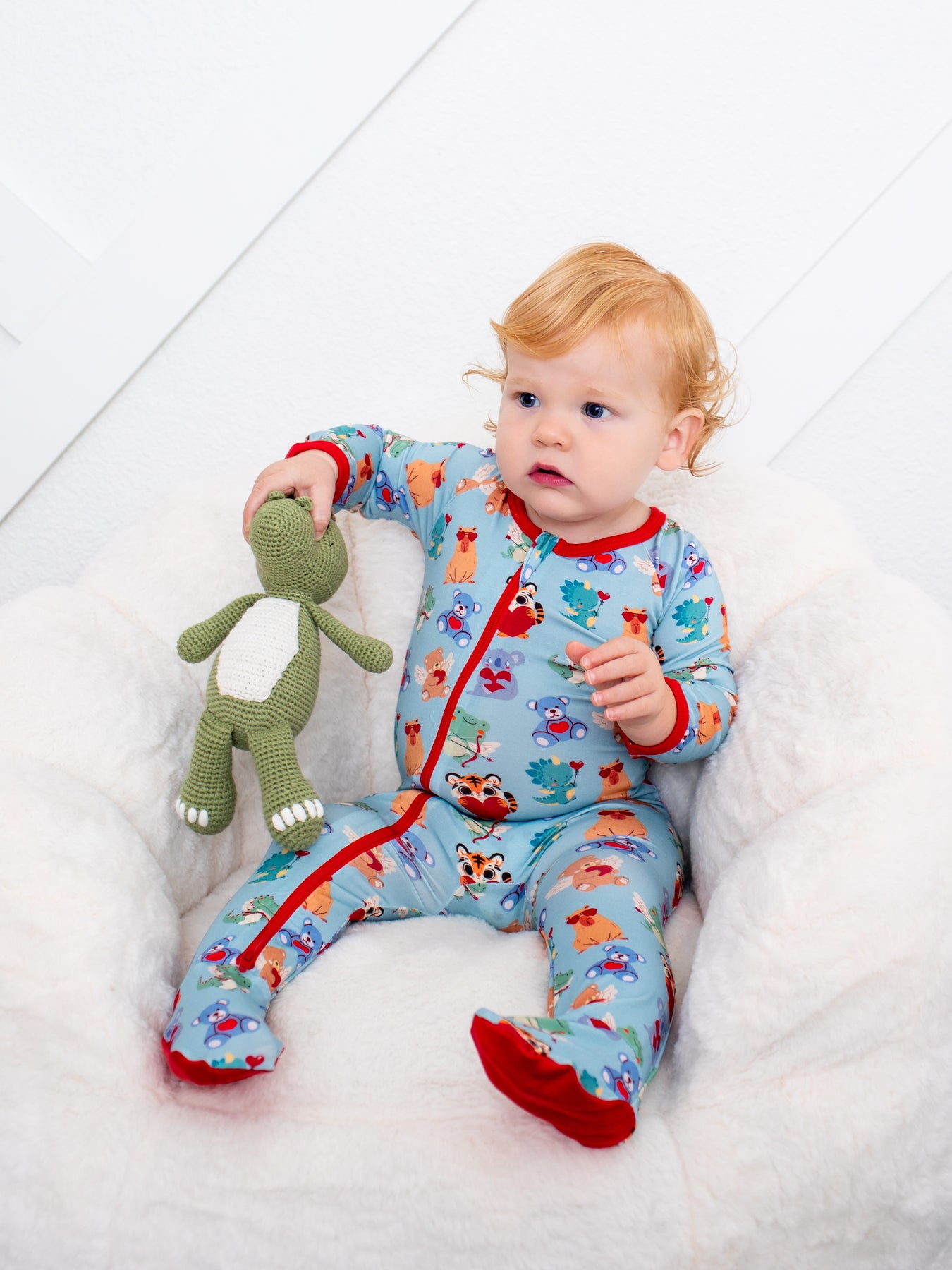 Our amazingly soft footies will keep little one's super cozy and snuggly from top to bottom! These soft as a baby's bottom footies are perfect for year round lounging. 2-way dual zipper from neckline to those adorable little chubby feet make for easy breezy changing. We also made sure to add built in fold over hand mittens on small sizes to prevent scratching and worry free zip tabs to keep zippers away from little chins.