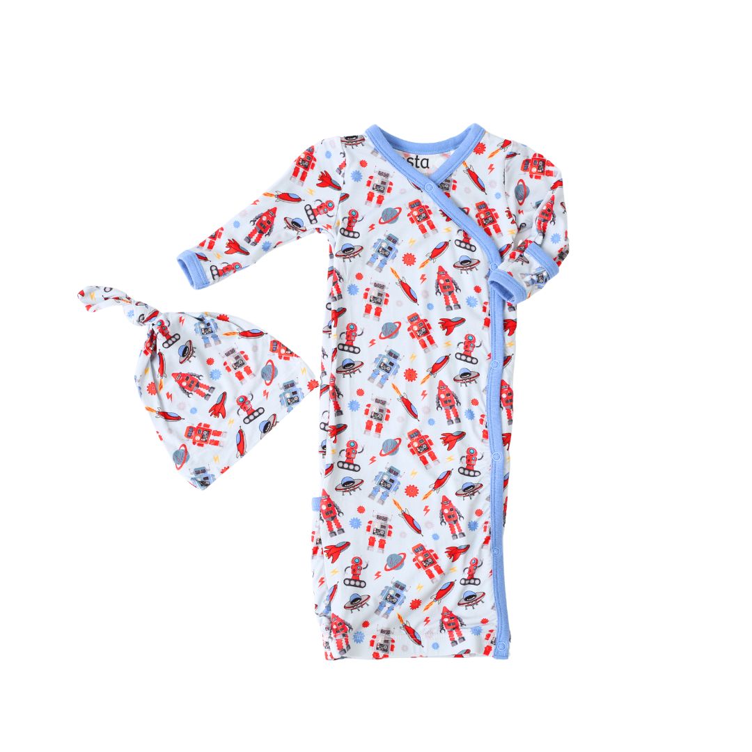 Wrap your little one in cozy comfort with a Gown & Hat, crafted from ultra-soft bamboo. The kimono-style gown easily folds over to keep tiny feet warm and snug, while the built-in hand mittens gently protect against scratches during sweet snoozes.
