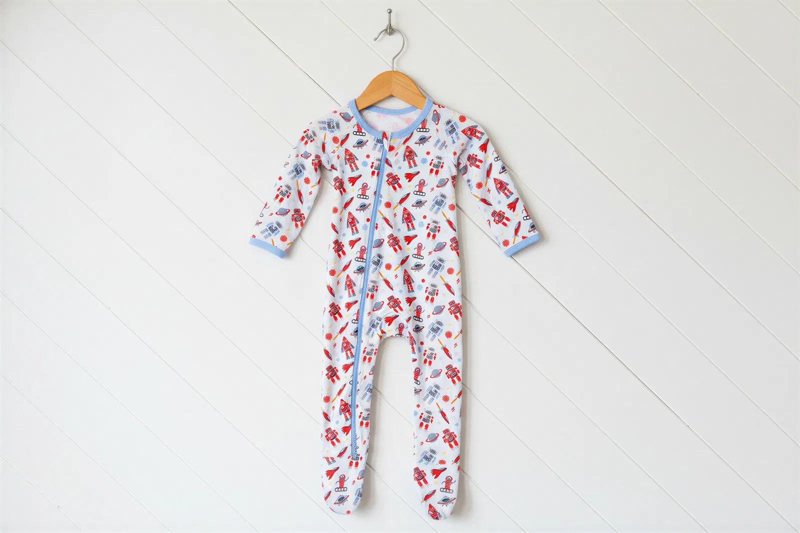 Our amazingly soft footies will keep little one's super cozy and snuggly from top to bottom! These soft as a baby's bottom footies are perfect for year round lounging. 2-way dual zipper from neckline to those adorable little chubby feet make for easy breezy changing. We also made sure to add built in fold over hand mittens on small sizes to prevent scratching and worry free zip tabs to keep zippers away from little chins.