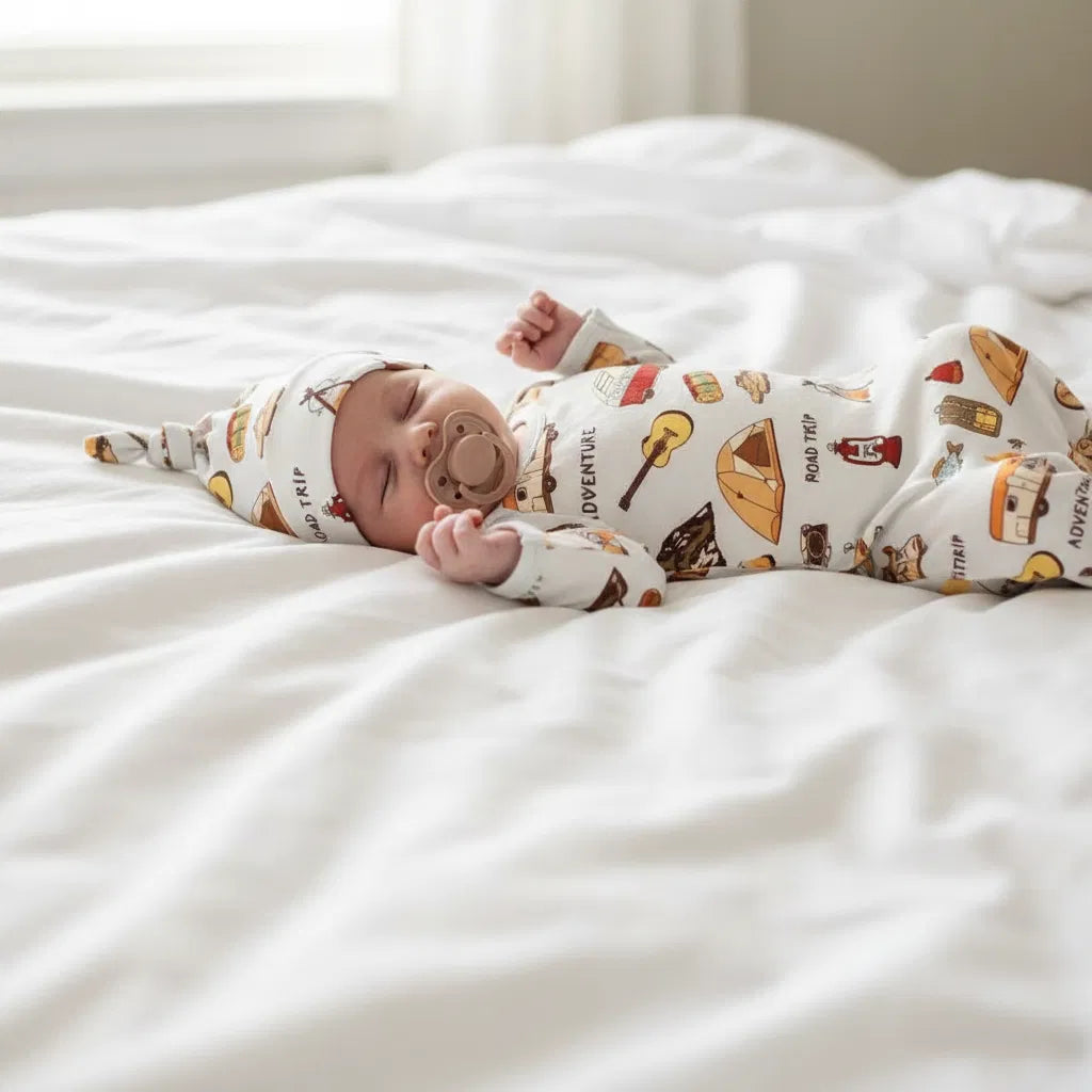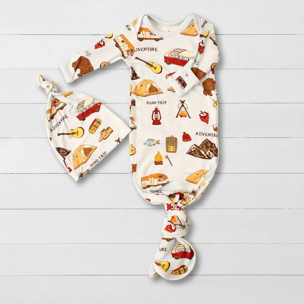Keep your little comfy and cozy in our Gown & Hat combo. Crafted from super soft bamboo and featuring fold over mittens, this outfit will keep them comfy from head to toe. The knot gown makes for effortless diaper changing.