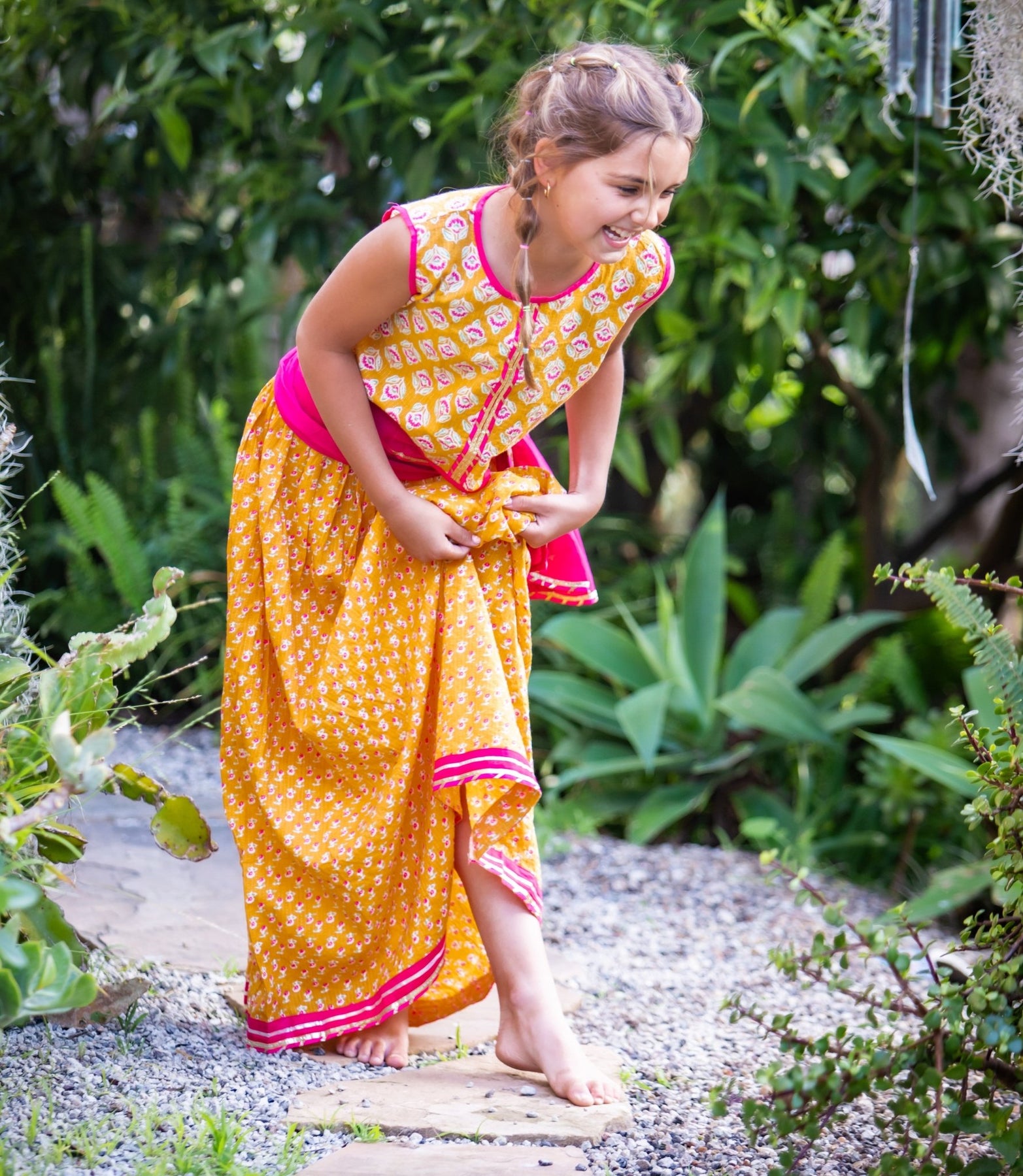 Add a pop of color with our Divya Lehenga! The bright orange and red combination is sure to stand out. The elastic waist adds comfort and the dupata completes the look. Perfect for your little fashionista to stay cool and stylish!