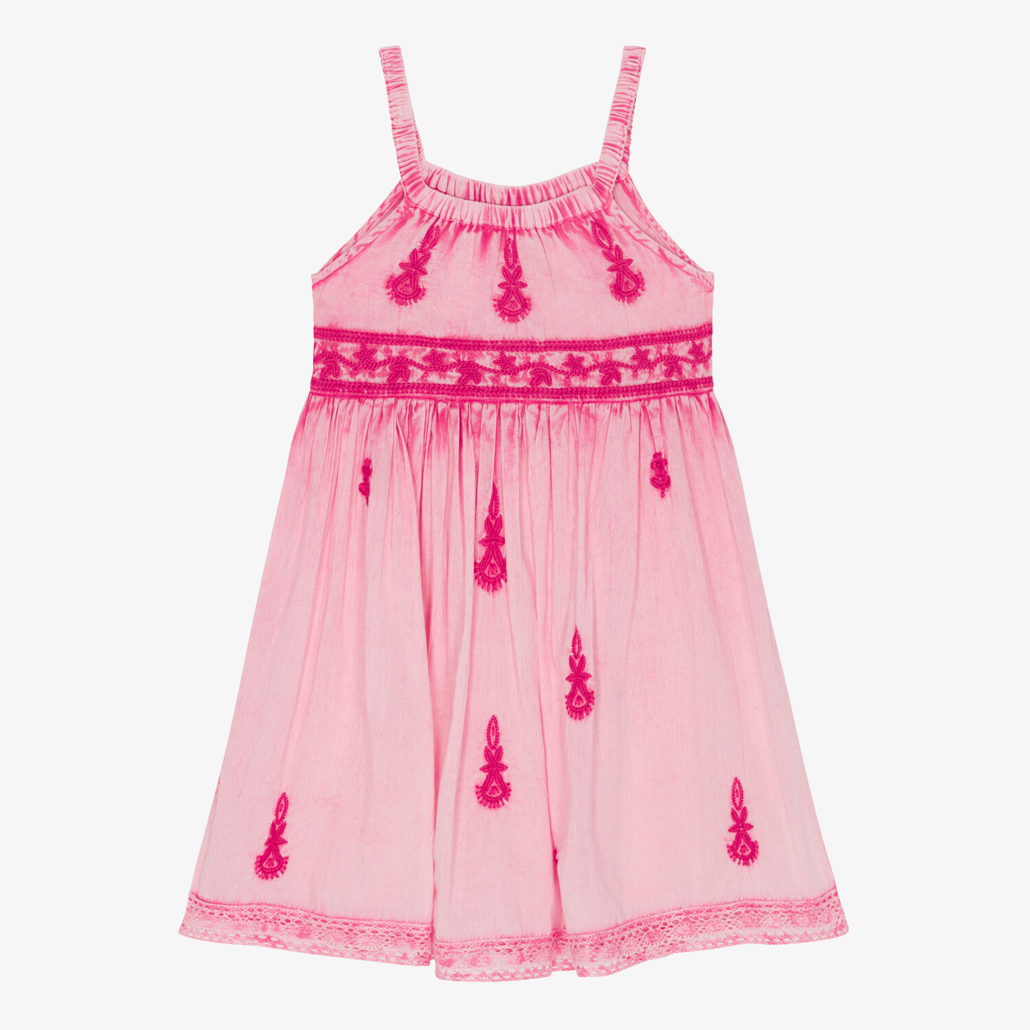 This Lilliana dress is 'ethnic-glam' perfect for your little princess! With a round stretchy neckline, this cream and sage-toned beauty is detailed with delicate Indian ethnic embroidery in sage, lace at the bottom and a trend-right ombre effect. She'll rock it with style!