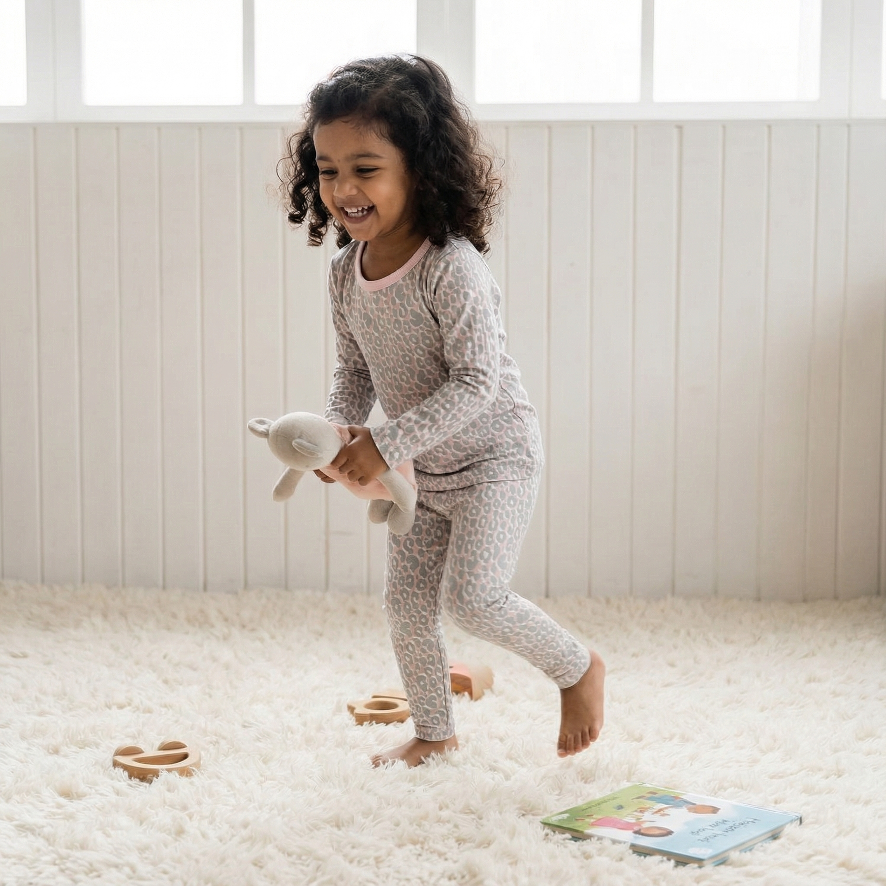 Made with super soft Lenzing Micromodal© these matching pant and long sleeve top sets will keep your little one super cozy and snuggly.