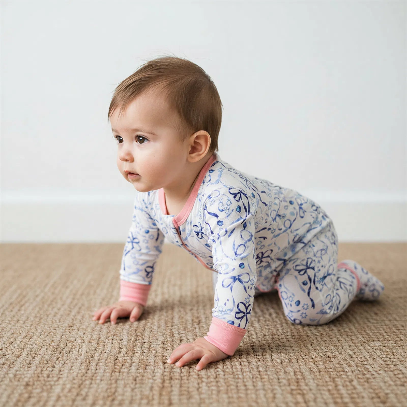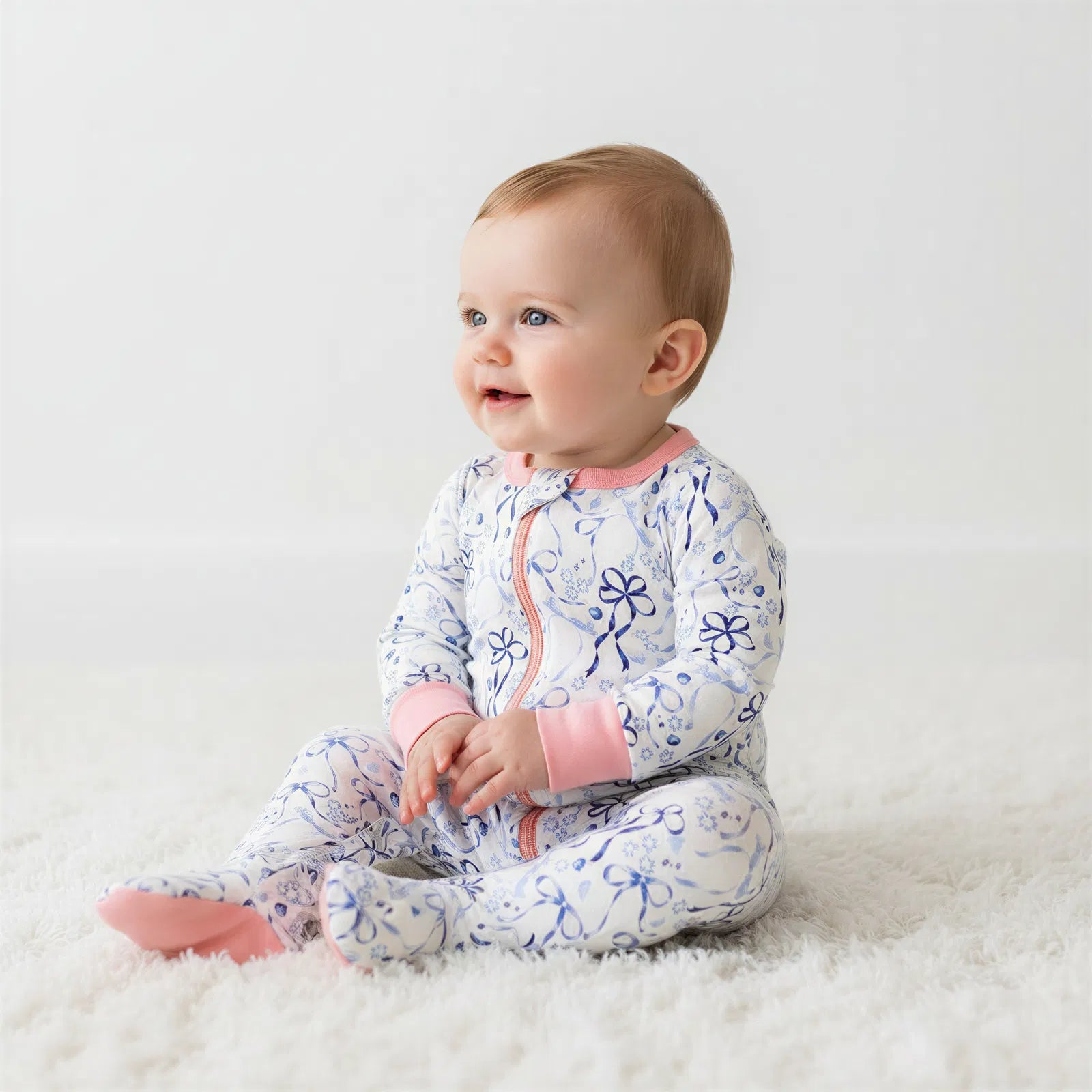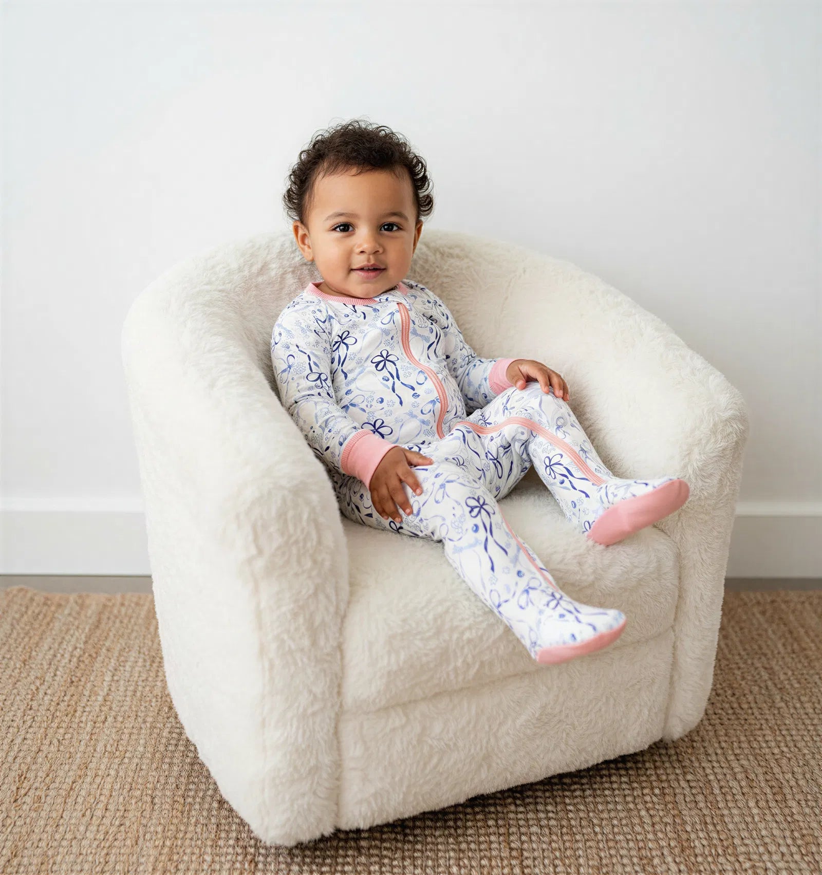 Our amazingly soft footies will keep little one's super cozy and snuggly from top to bottom! These soft as a baby's bottom footies are perfect for year round lounging. 2-way dual zipper from neckline to those adorable little chubby feet make for easy breezy changing. We also made sure to add built in fold over hand mittens on small sizes to prevent scratching and worry free zip tabs to keep zippers away from little chins.