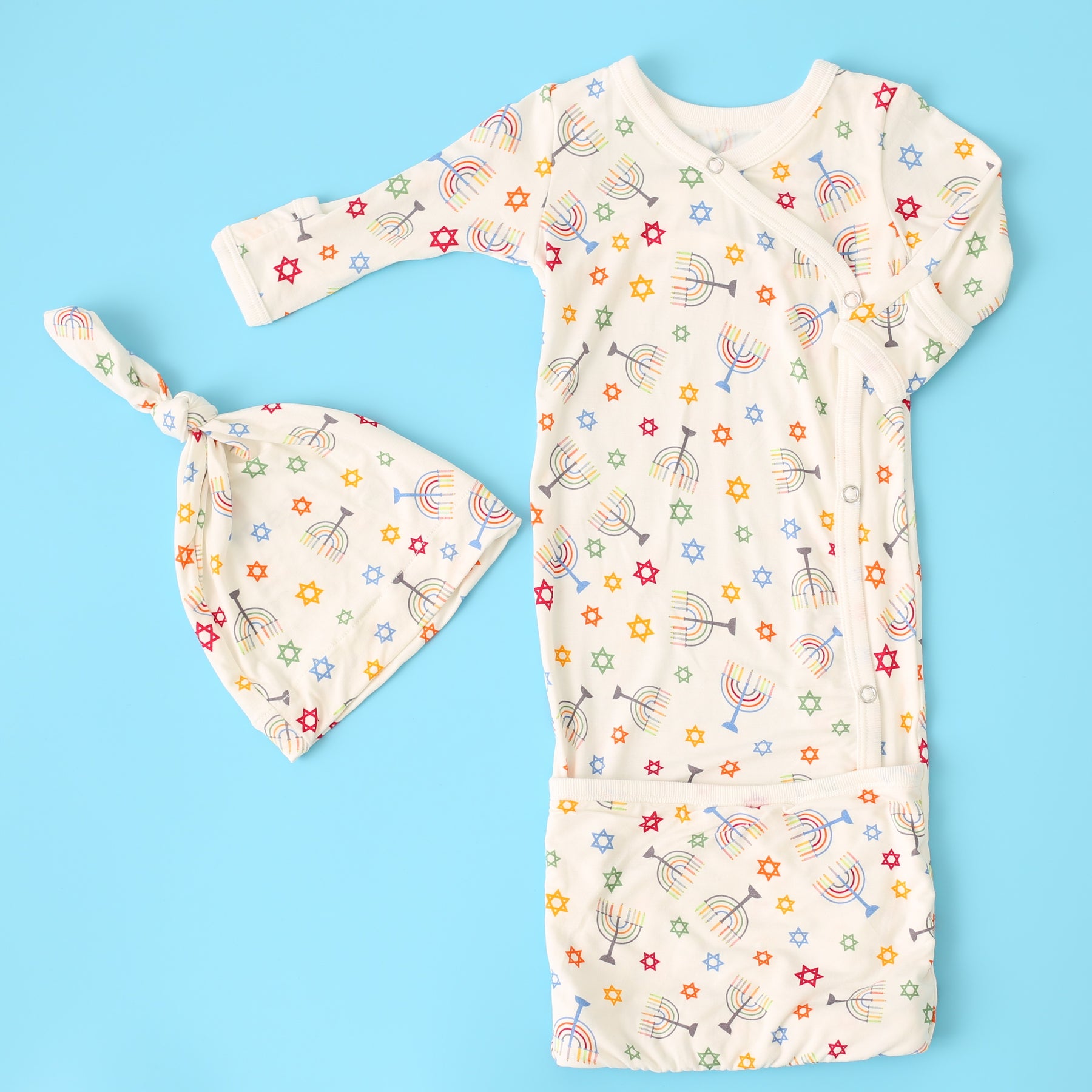 Wrap your little one in cozy comfort with a Gown & Hat, crafted from ultra-soft bamboo. The kimono-style gown easily folds over to keep tiny feet warm and snug, while the built-in hand mittens gently protect against scratches during sweet snoozes.