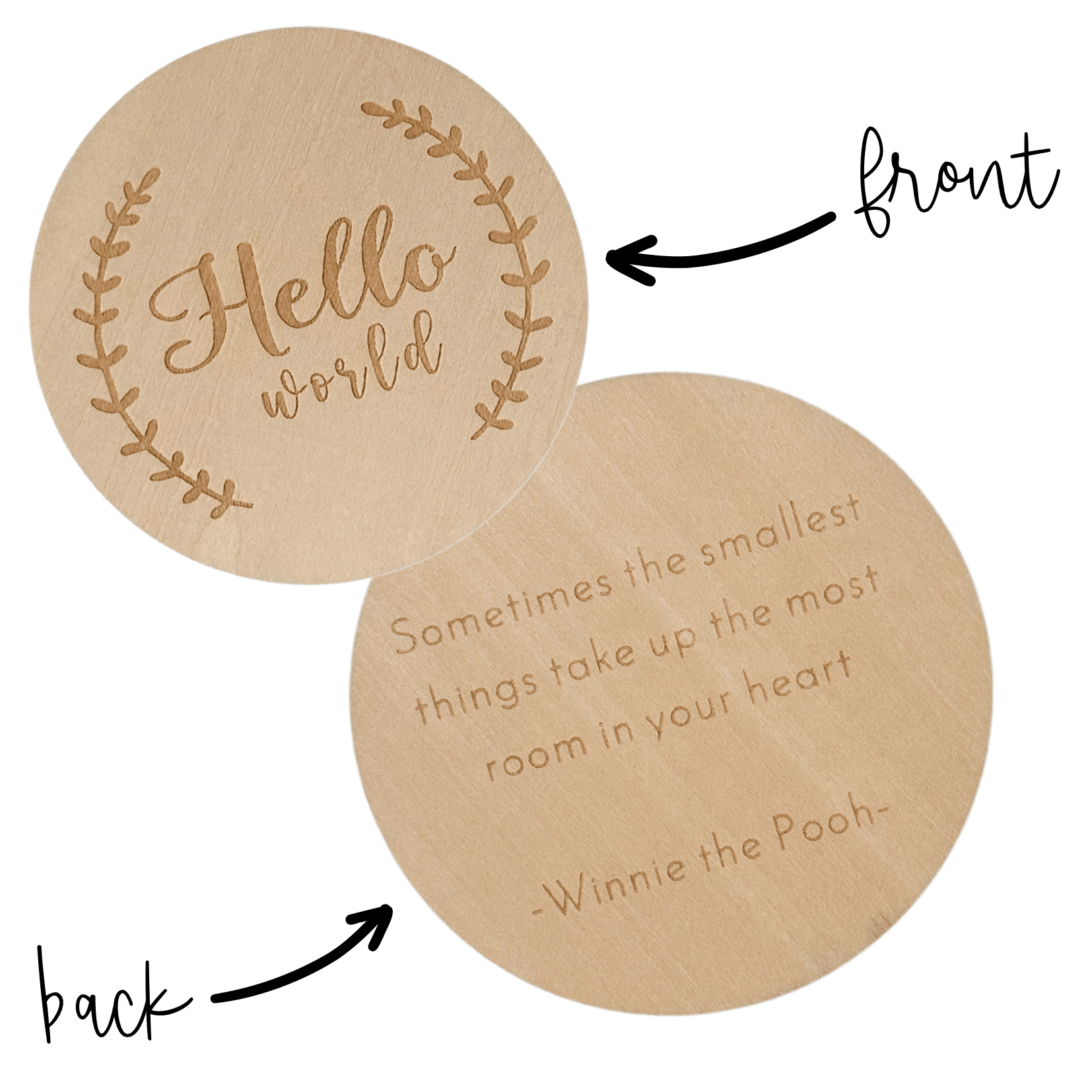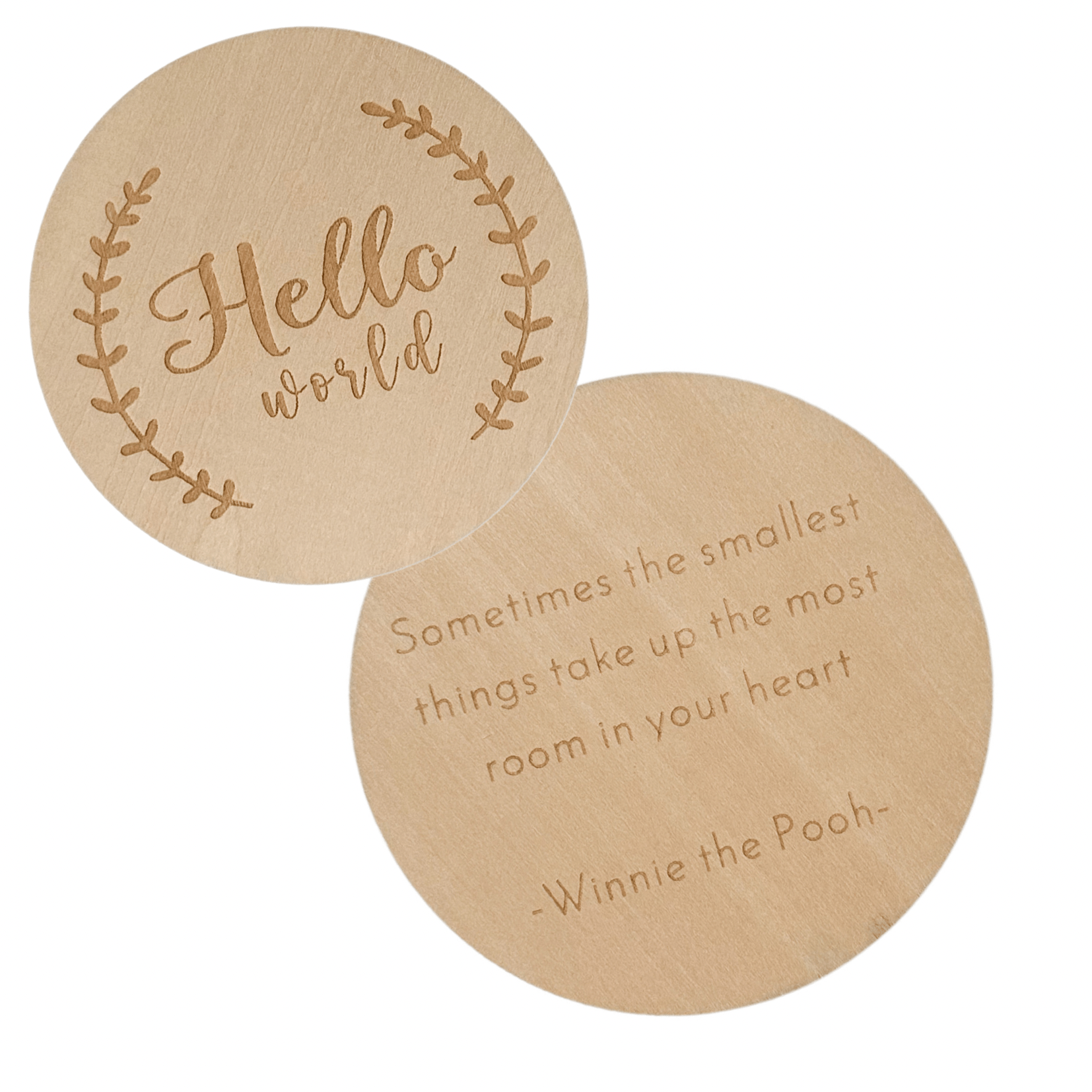 Measuring at 4 inches in diameter, this disc is the perfect size for holding alongside a newborn baby, making for a memorable and adorable photograph. Crafted from high-quality, natural wood, the newborn baby wooden disc card is a timeless and durable keepsake that will last for years to come.