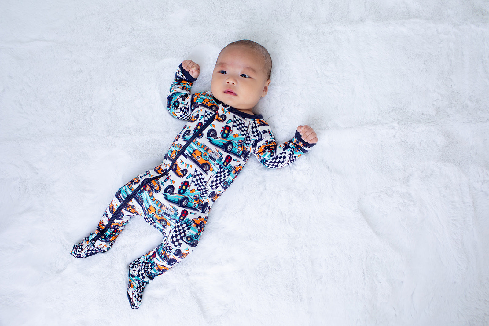 Our amazingly soft footies will keep little one's super cozy and snuggly from top to bottom! These soft as a baby's bottom footies are perfect for year round lounging. 2-way dual zipper from neckline to those adorable little chubby feet make for easy breezy changing. We also made sure to add built in fold over hand mittens on small sizes to prevent scratching and worry free zip tabs to keep zippers away from little chins.