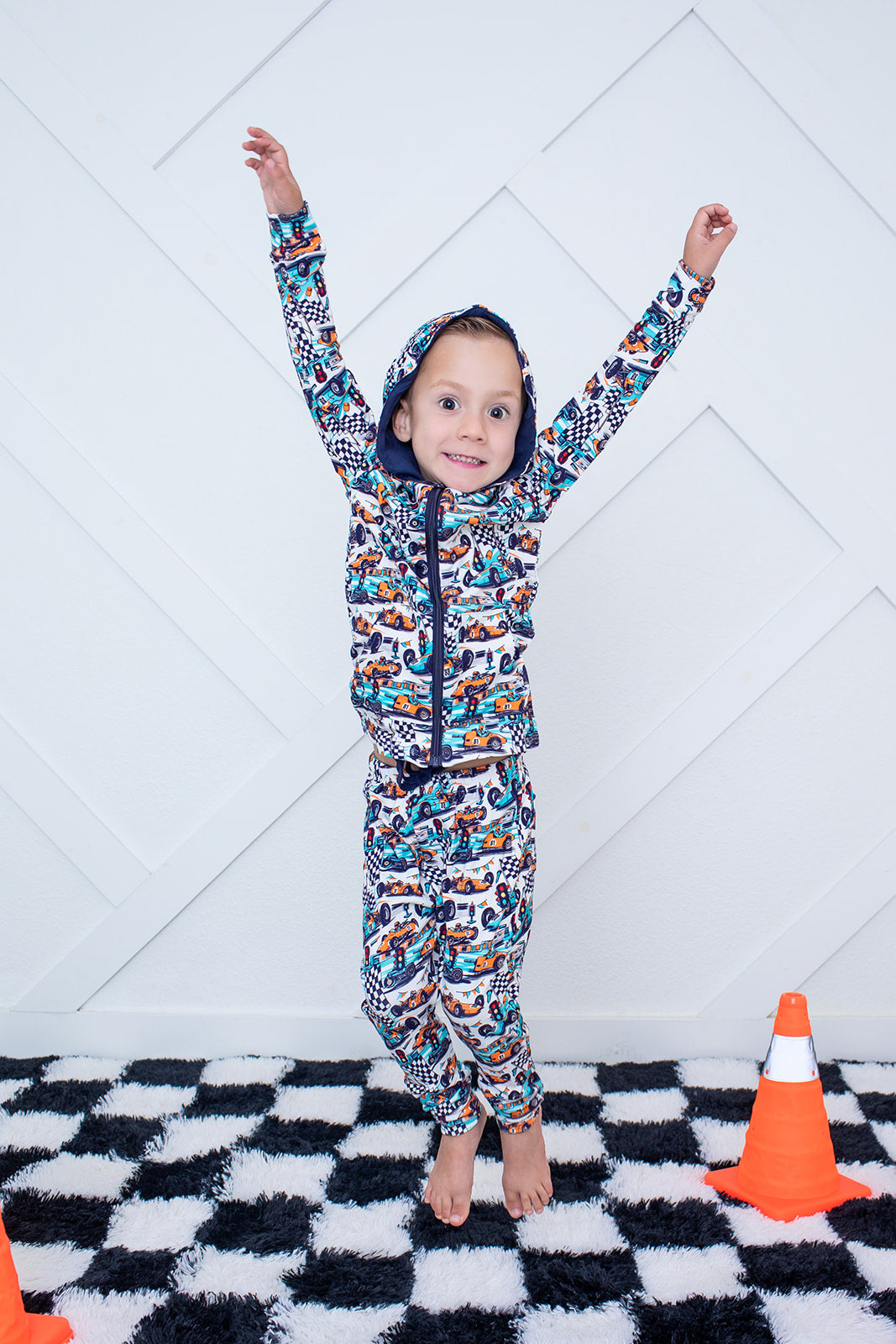 These relaxed fit joggers are comfy, cool and cozy. Made with our signature cotton/bamboo blend, 3x thicker than our regular bamboo to keep your little one warm with a super soft feel.  Drawstrings add a cool edge to these comfortable and relaxed fit joggers. Pair with the matching zippered hoodie (sold separately) for an unbeatable look.