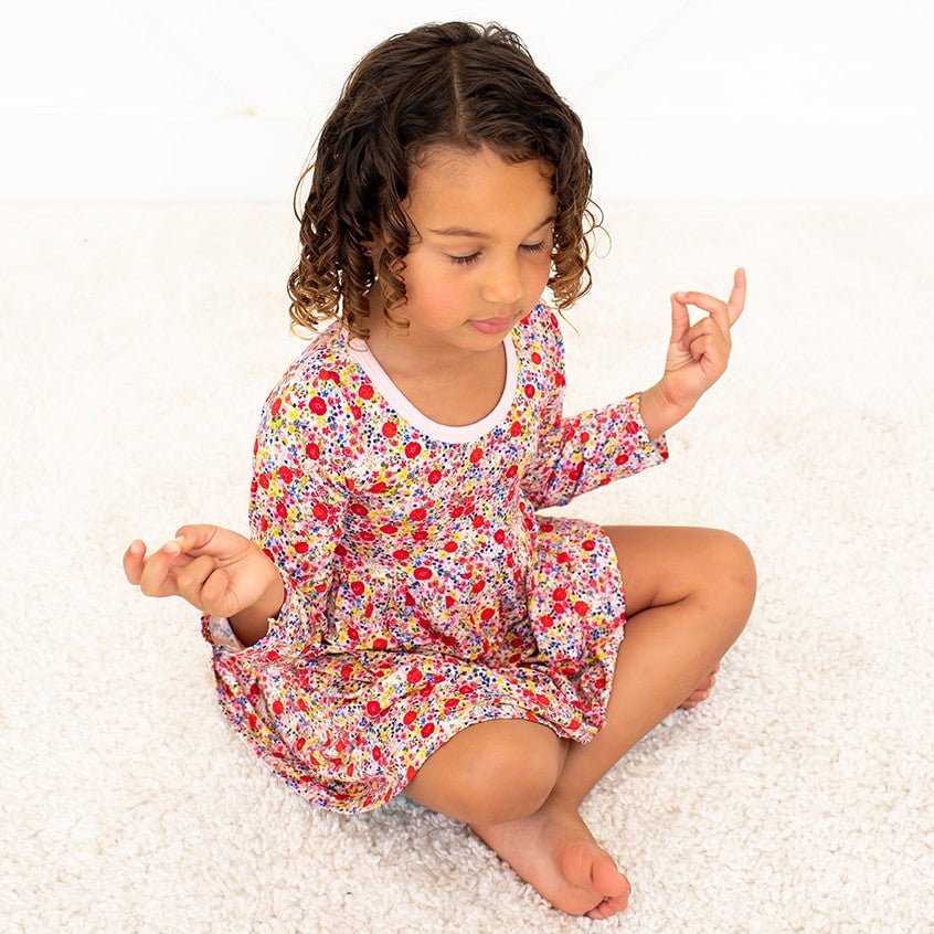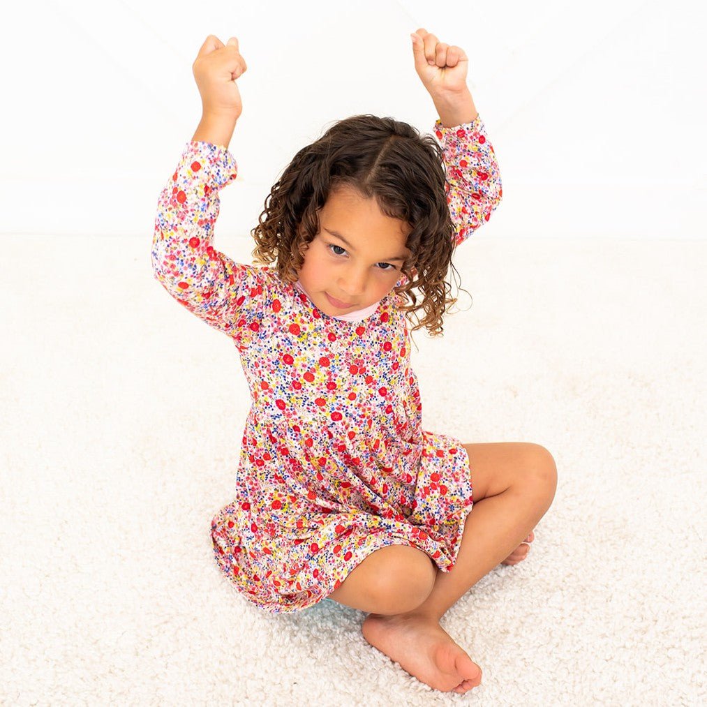 This dreamy dress is made to make any toddler twirl with joy! Soft bamboo fabric and long sleeves keep them comfy and stylish while they explore, frolic, and flutter through their day! Who said playtime has to be boring?