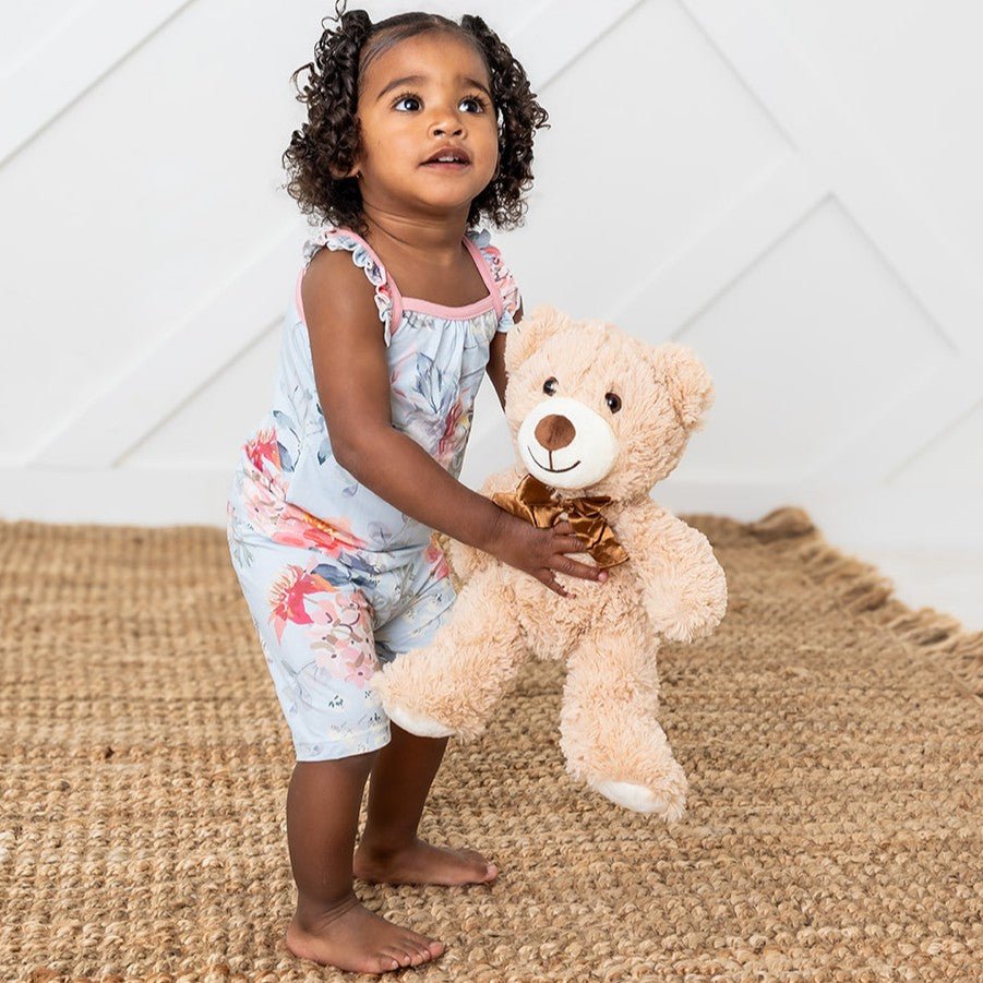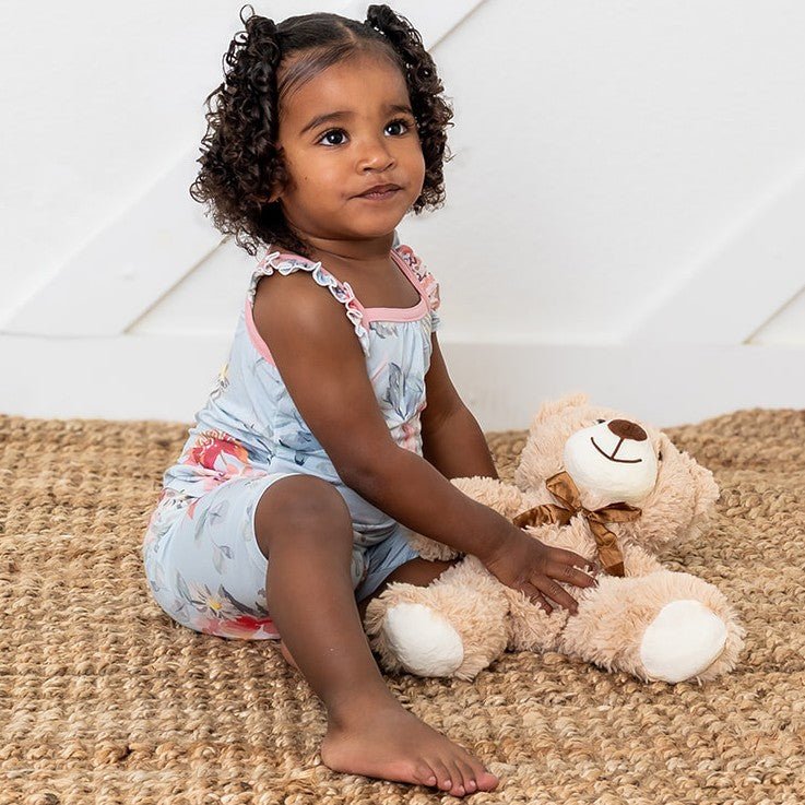 Get your little ones ready for a day of play with our new Flutter Sleeve tank tops and snug shorts in a pretty floral print print! Made from soft bamboo, this set with keep your little one feeling cool and comfy all day long. Featuring print of sweet & serene florals this set is the perfect combination of style and comfort for your little one.