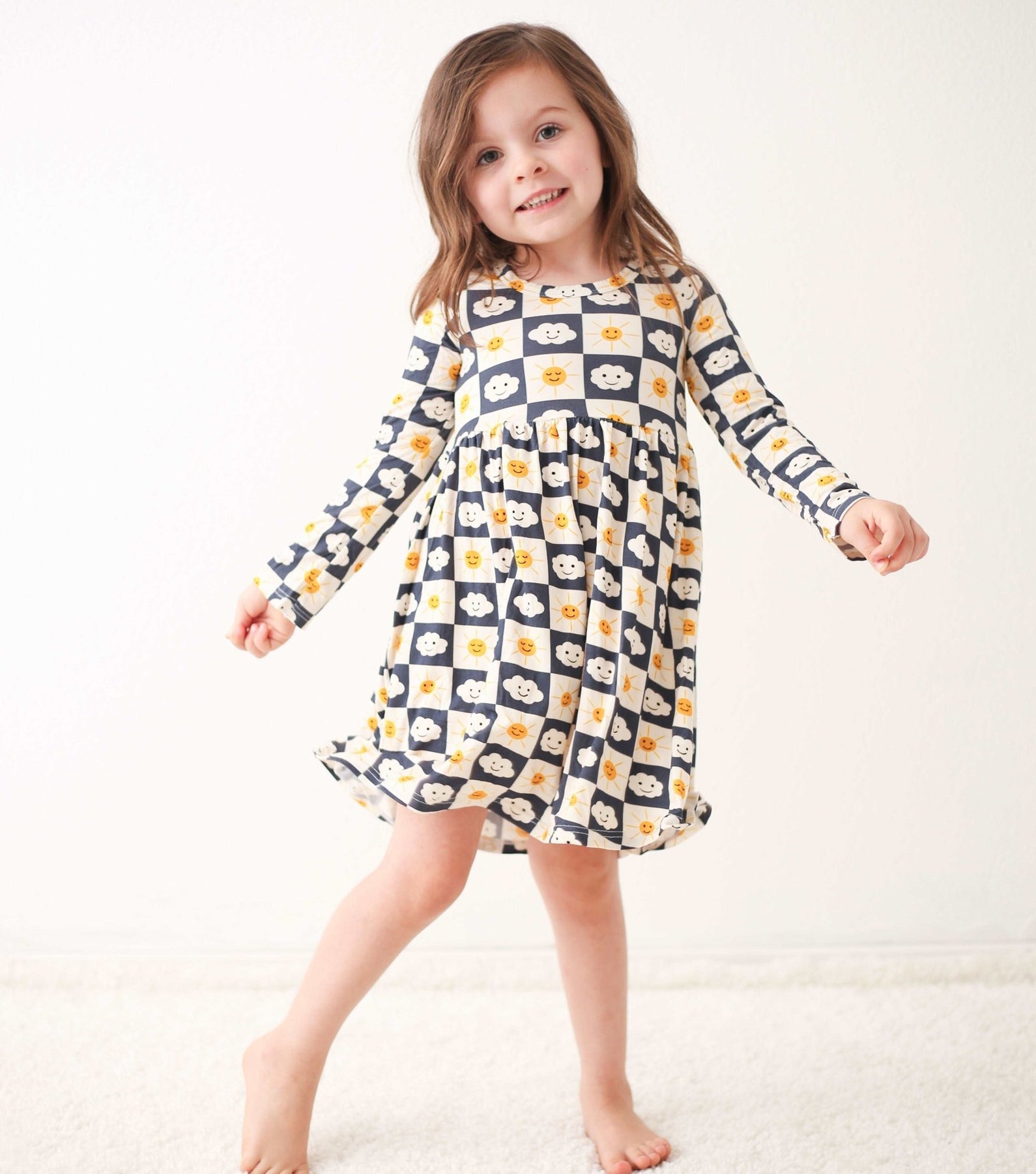 This dreamy dress is made to make any toddler twirl with joy! Soft bamboo fabric and long sleeves keep them comfy and stylish while they explore, frolic, and flutter through their day! Who said playtime has to be boring?