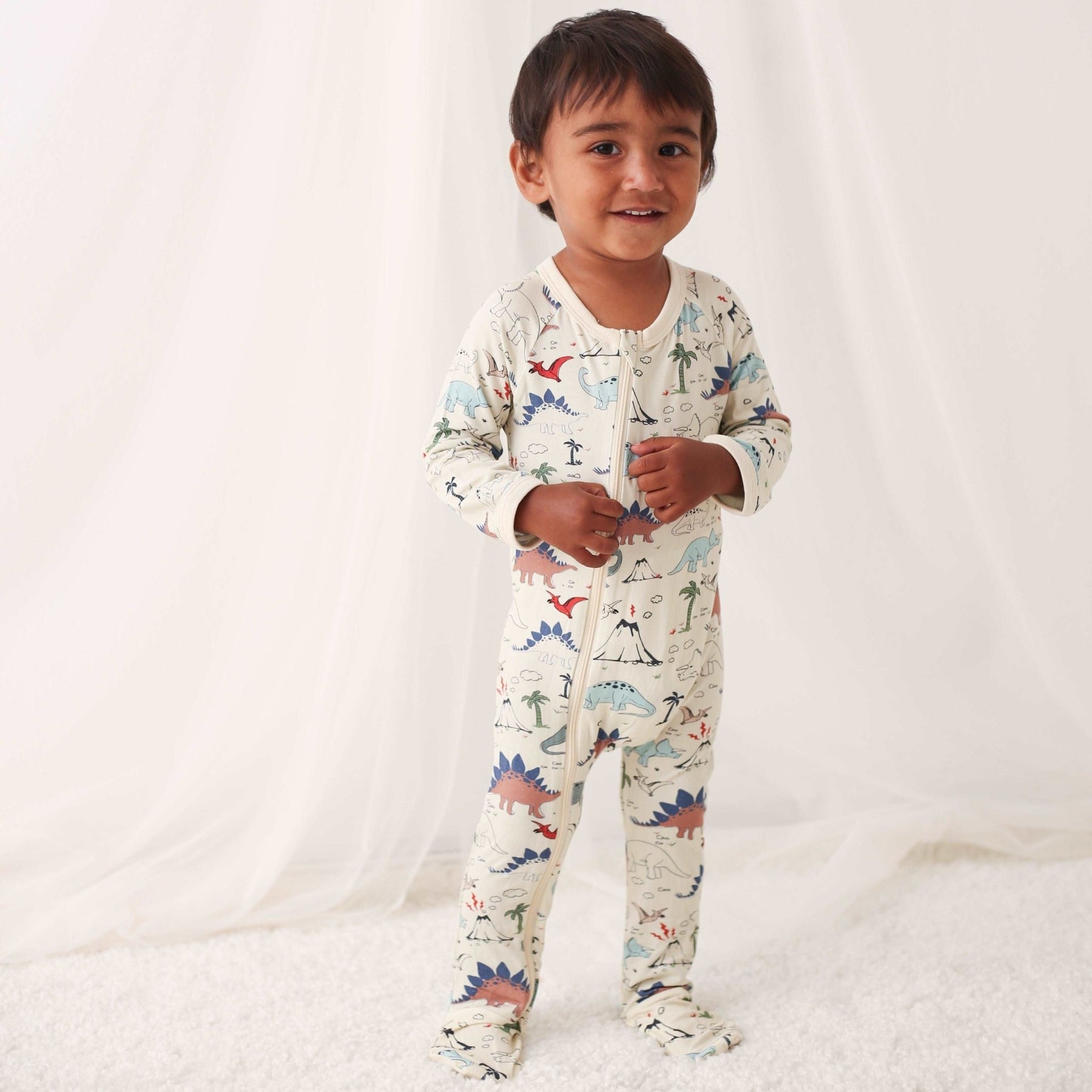 Our amazingly soft footies will keep little one's super cozy and snuggly from top to bottom! These soft as a baby's bottom footies are perfect for year round lounging. Zipper from neckline to those adorable little chubby feet make for easy breezy changing. We also made sure to add built in fold over hand mittens to prevent scratching and worry free zip tabs to keep zippers away from little chins.