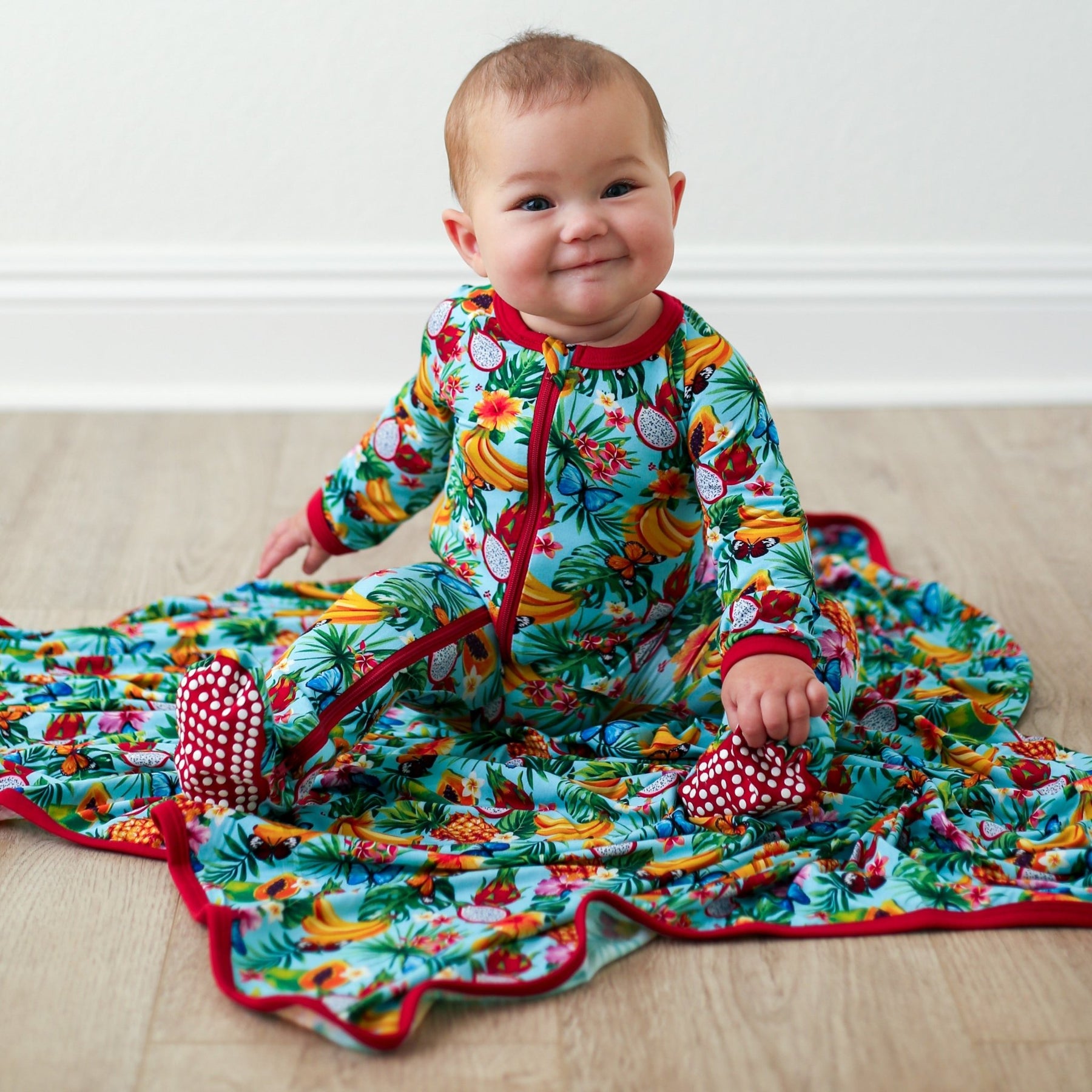 Our amazingly soft tropical fruit footies will keep little one's super cozy and snuggly from top to bottom! These soft as a baby's bottom footies are perfect for year round lounging. Zipper from neckline to those adorable little chubby feet make for easy breezy changing. We also made sure to add built in fold over hand mittens on small sizes to prevent scratching and worry free zip tabs to keep zippers away from little chins.