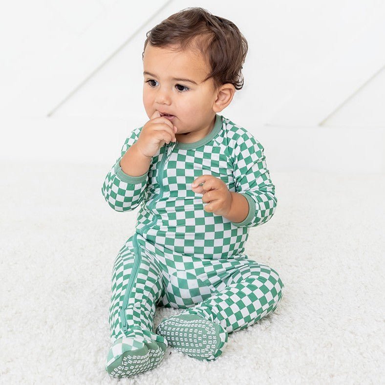 Keep your little one snuggled up in our green checkered footie! Made with super soft bamboo, this footie dual 2-way zipper for hassle-free diaper changes. Plus, keep little hands warm with fold over mittens on NB and 0/3m sizes, and foot grips on larger sizes. So soft and cozy, your baby will love it!