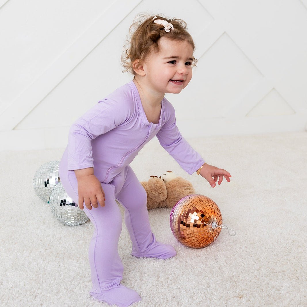 Keep your little one snuggled up in our Lilac Purple footie! Made with super soft bamboo, this footie features a beautiful purple color and a dual 2-way zipper for hassle-free diaper changes. Plus, keep little hands warm with fold over mittens on NB and 0/3m sizes, and foot grips on larger sizes. So soft and cozy, your baby will love it!