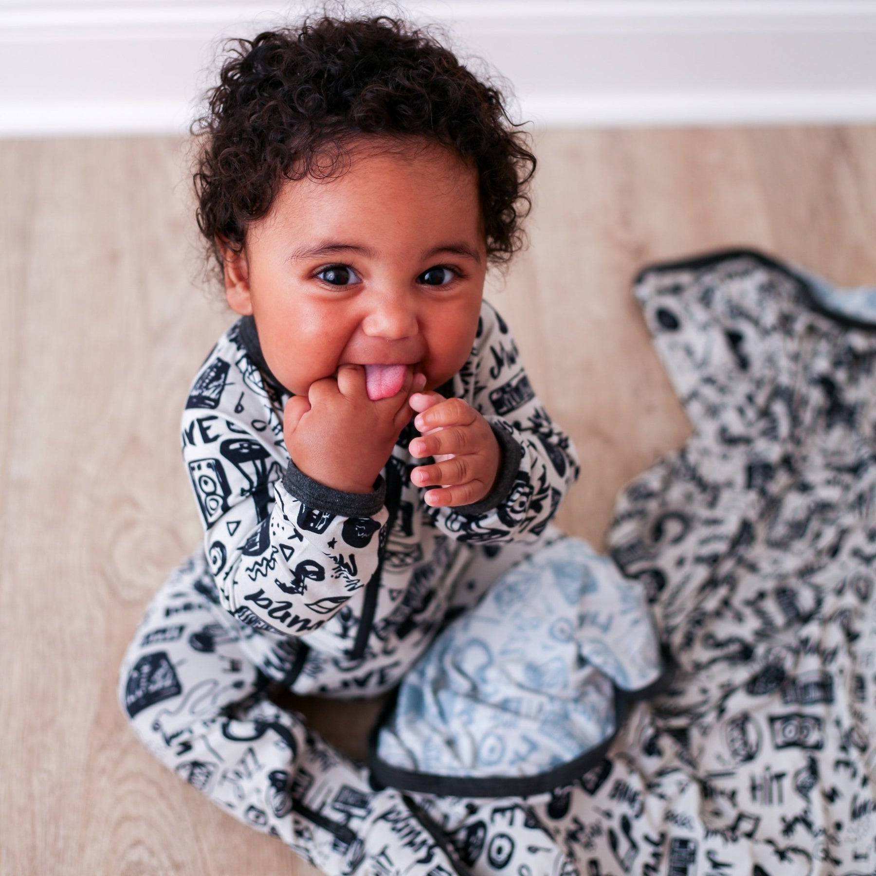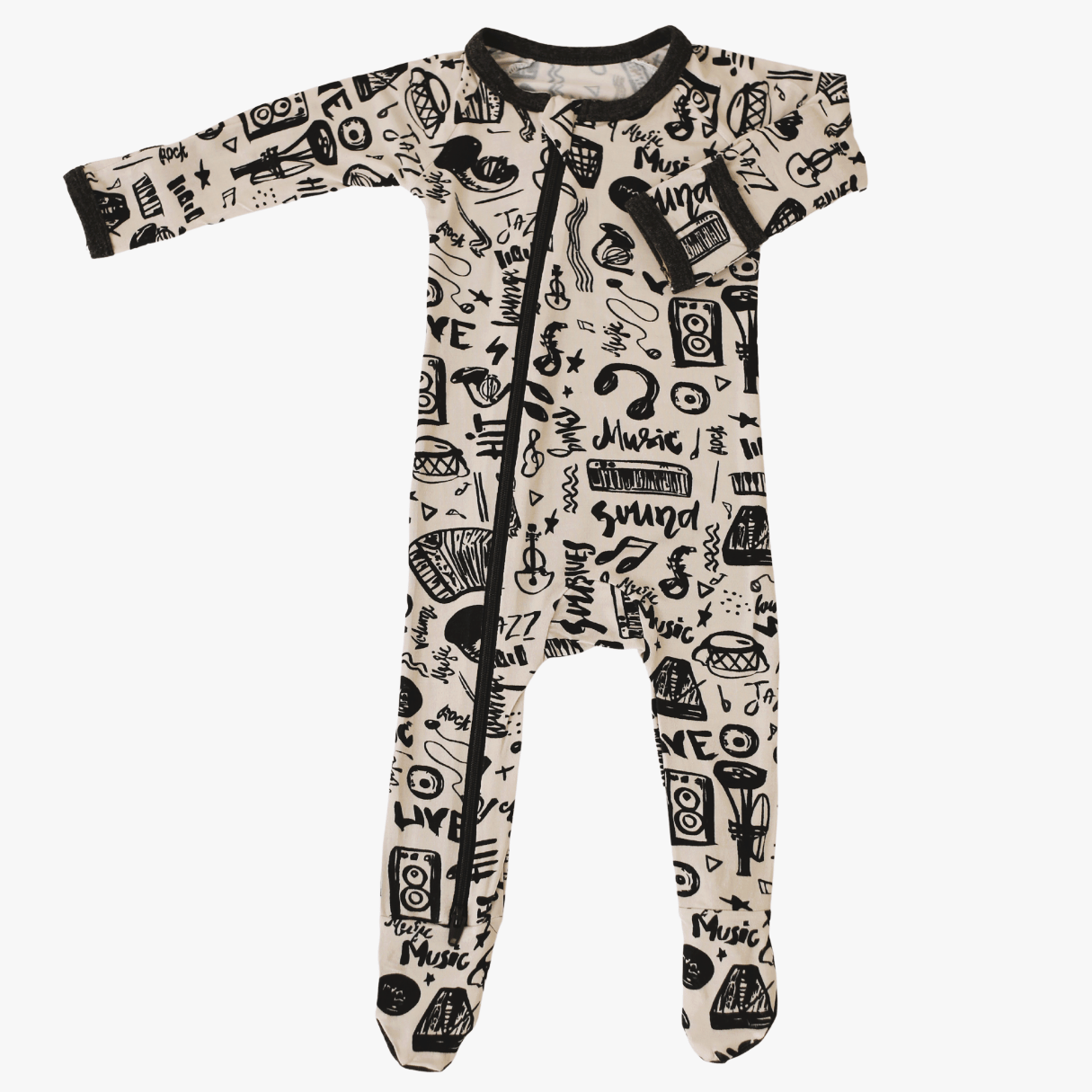 Wrap your little one in musical bliss with our soft and snuggly Music Footie! Featuring a playful print of musical notes and instruments, these footies are perfect for year round lounging. With a zipper from neckline to chubby feet, changing is a breeze. Plus, built-in hand mittens and worry-free zip tabs ensure safety and comfort.
