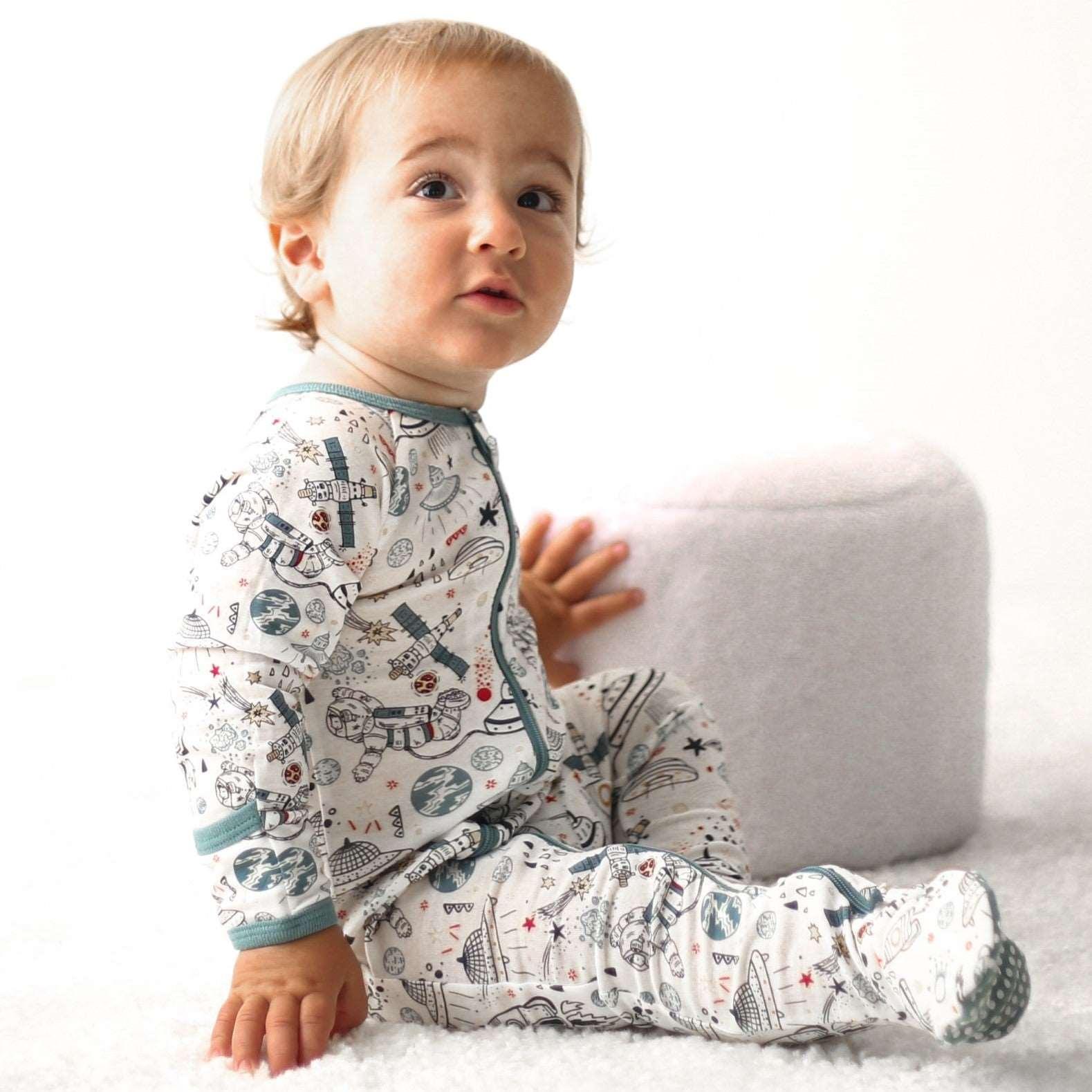 Our amazingly soft footies will keep little one's super cozy and snuggly from top to bottom! These soft as a baby's bottom footies are perfect for year round lounging. Zipper from neckline to those adorable little chubby feet make for easy breezy changing. We also made sure to add built in fold over hand mittens to prevent scratching and worry free zip tabs to keep zippers away from little chins. Made with super soft Lenzing Micromodal ©
