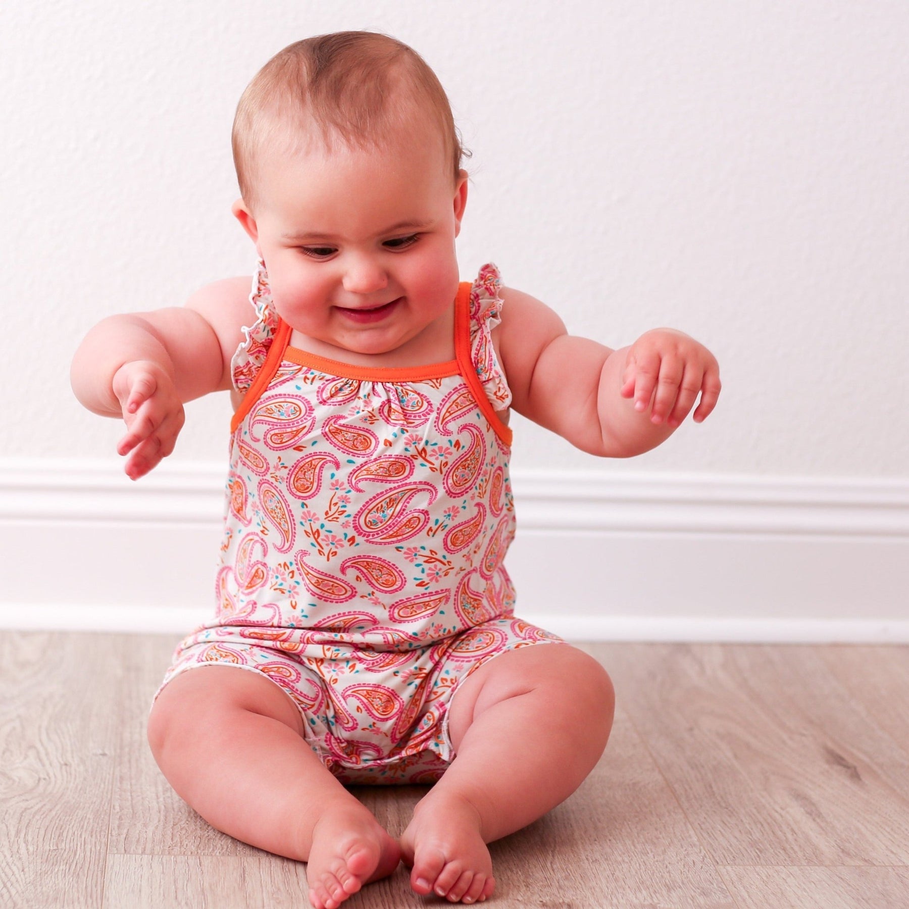 Our amazingly soft groovy floral bubble romper will keep your little your little babe cool and comfy all summer long. These soft as butter flutter sleeve rompers are perfect for spring and summertime lounging.