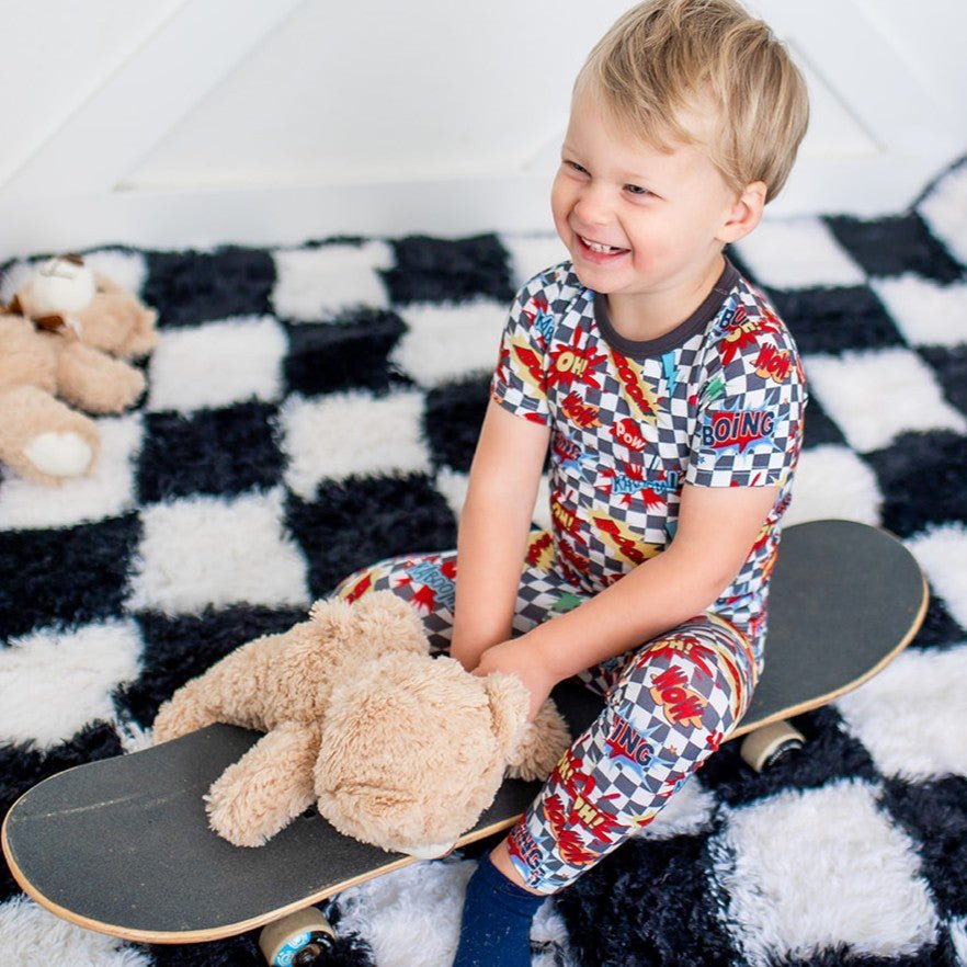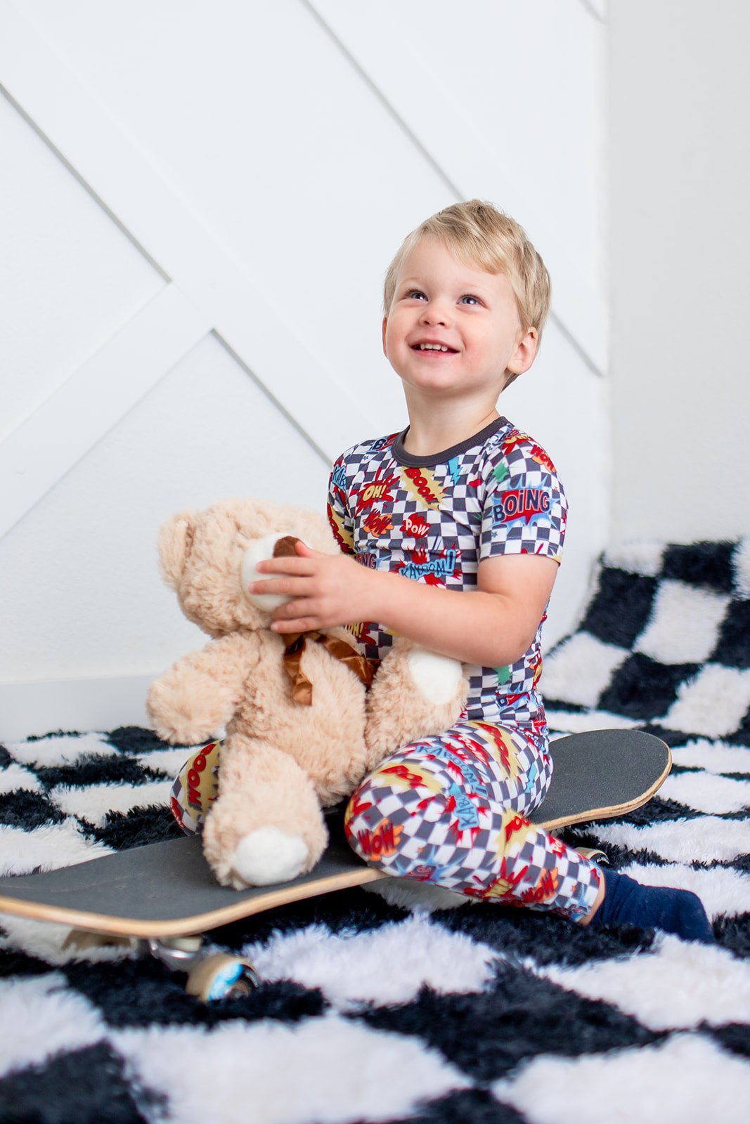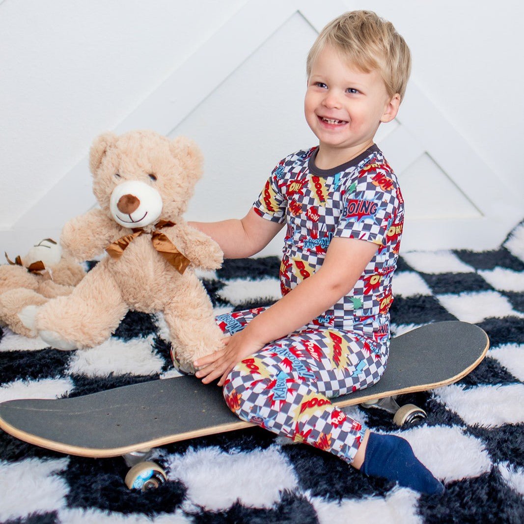 Get your little ones ready for a good nights sleep with our super cool short sleeve Pop Pow Wow Pajamas! Made from soft bamboo, these pajamas will keep them comfortable all night long. These pajamas are the perfect combination of style and comfort for your little one.