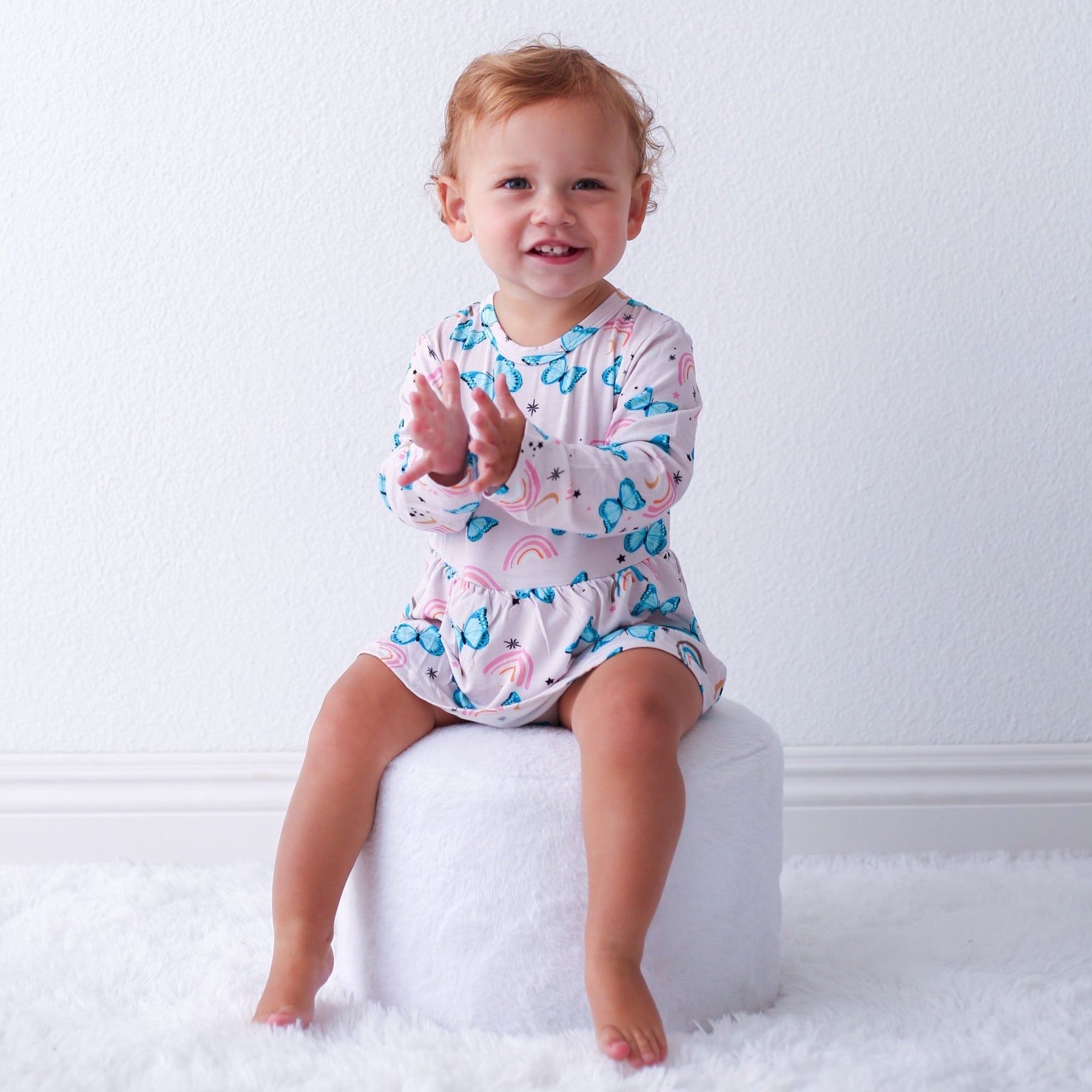 Say yes to the perfect casual outfit: this comfy bodysuit dress is made from ultra-soft bamboo, with cozy long sleeves and fuss-free snap closure. It's the ideal pick for hassle-free diaper changes! (Plus, it's too cute for words!)